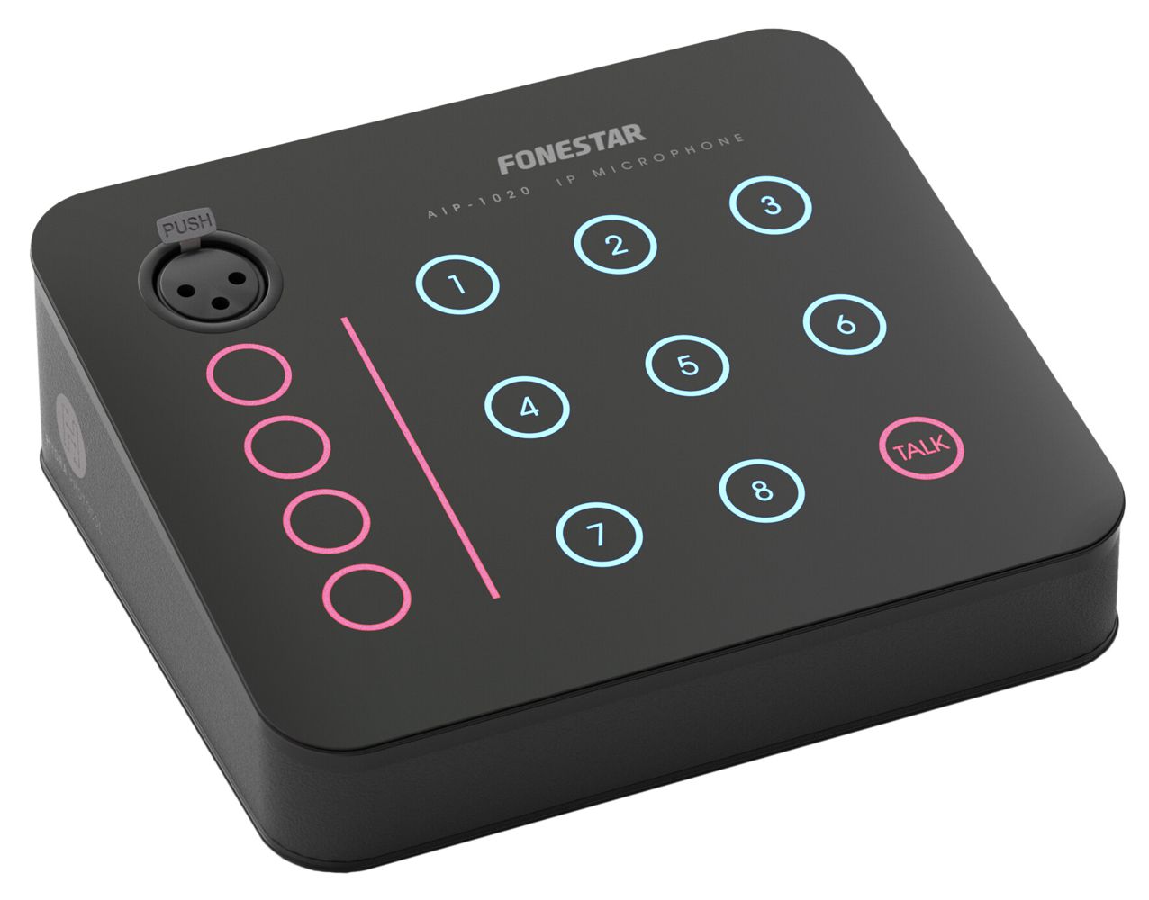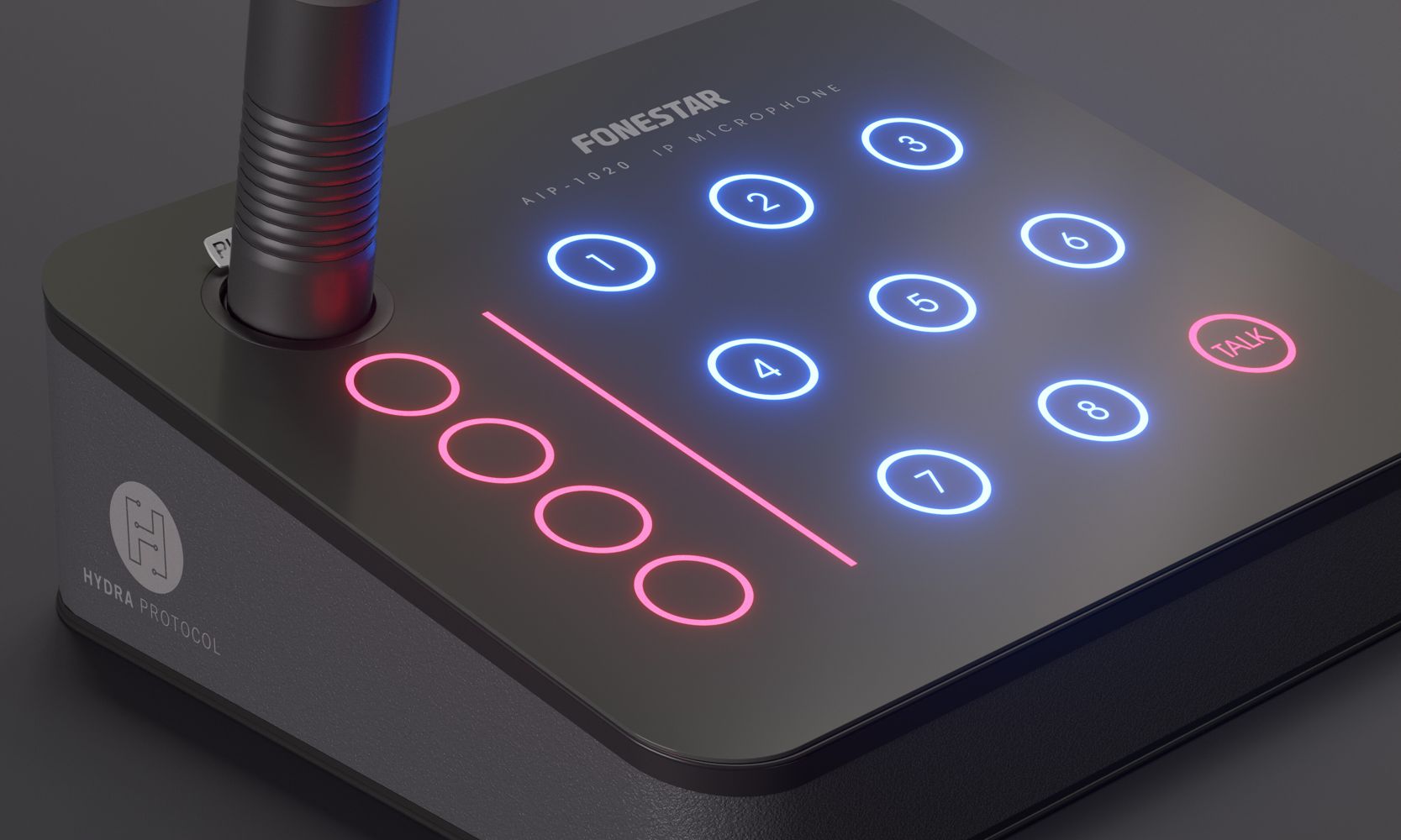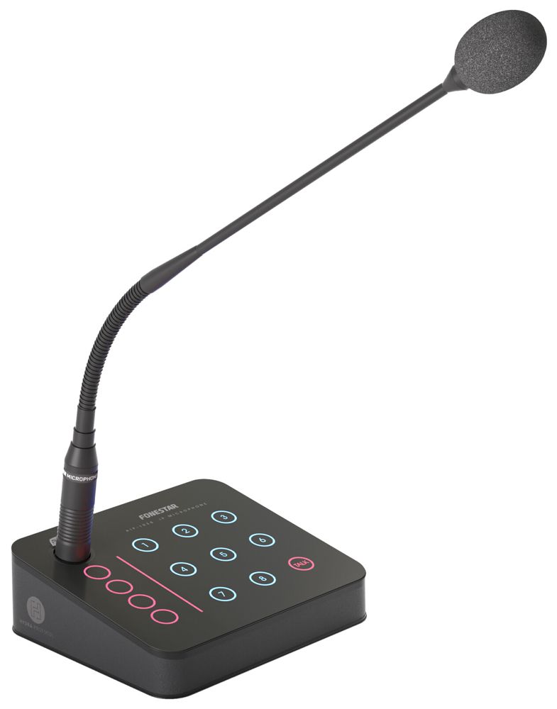 Microphone for IP audio system with capacitive touch keypad. Easy operation for microphone paging and message playback. It has a capacitive touch keypad with 12 configurable buttons.