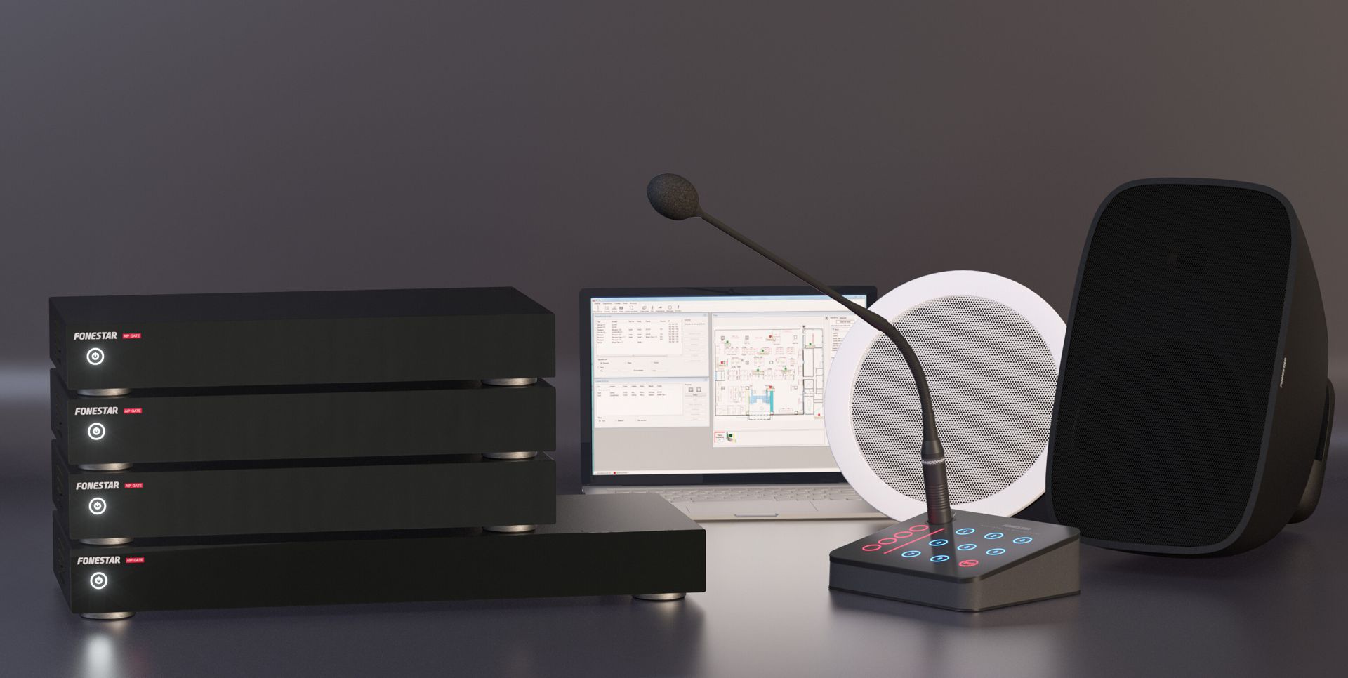 - PC software with automatic detection of AIP series equipment connected in the LAN Creation of audio channels for distribution