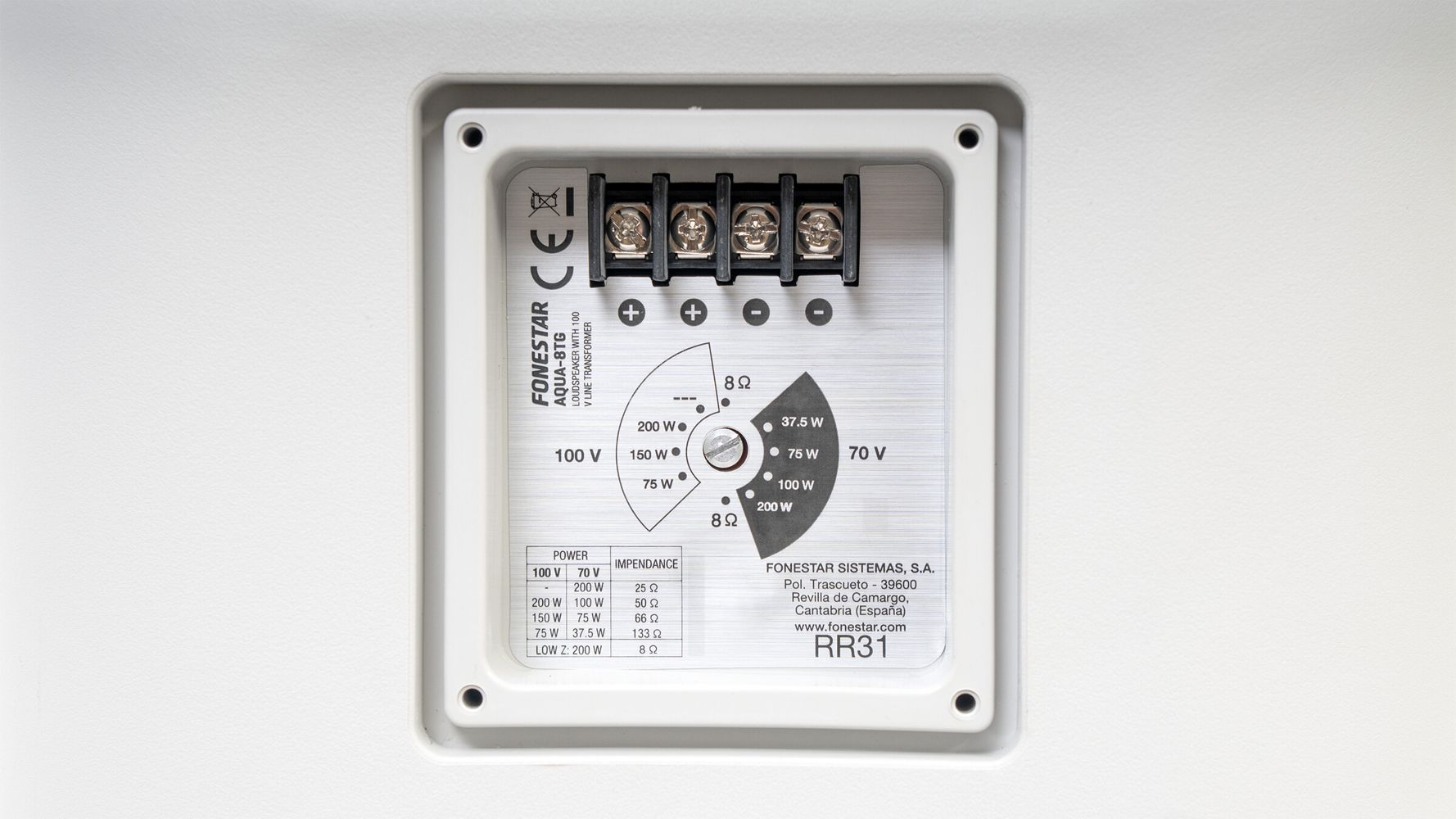 - Loudspeaker with 100 V line transformer and low impedance 8 Ω.