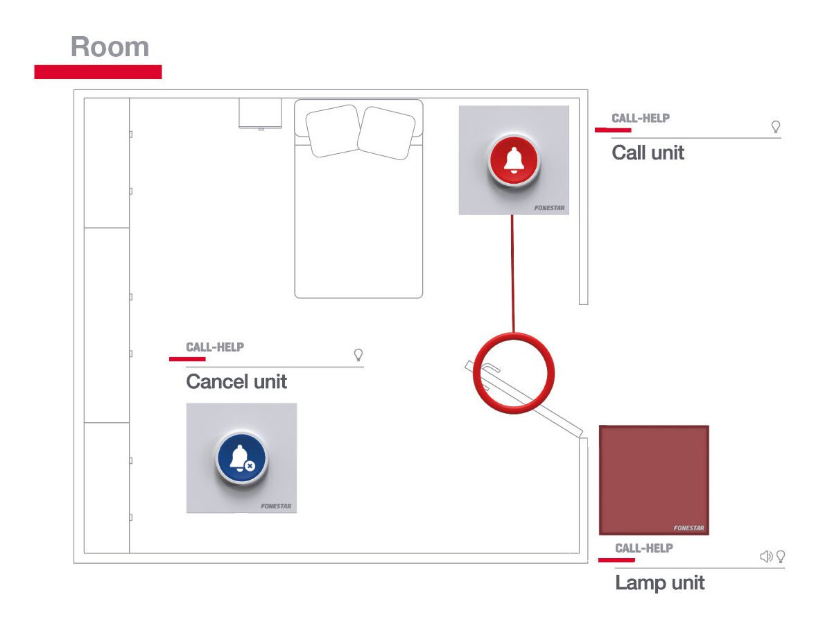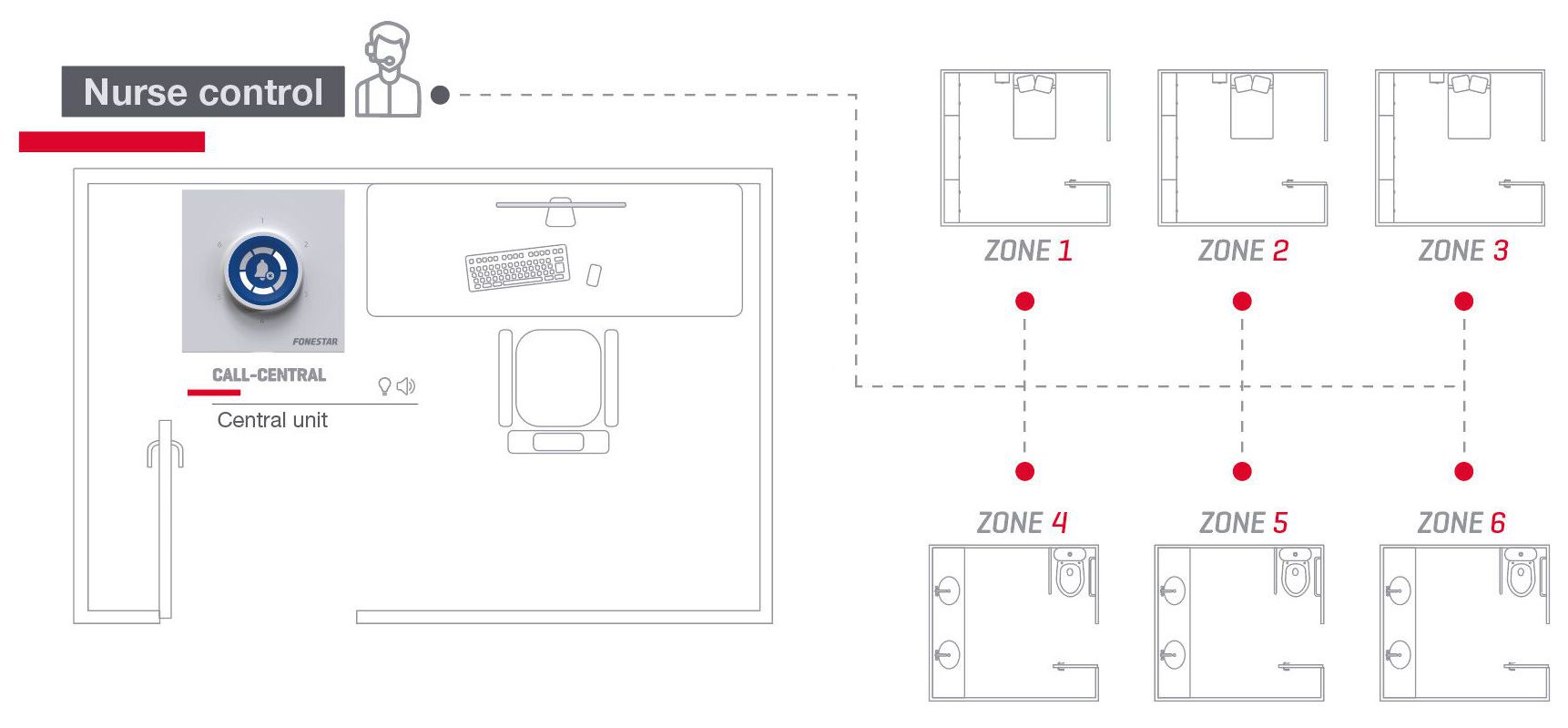 - Connectiviteit met CALL-CENTRAL: Maakt verbinding van maximaal 6 kits met een centraal controlepunt mogelijk, waardoor de oproep wordt ontvangen en de gebruiker wordt geïnformeerd dat zijn verzoek correct is verzonden en ontvangen.