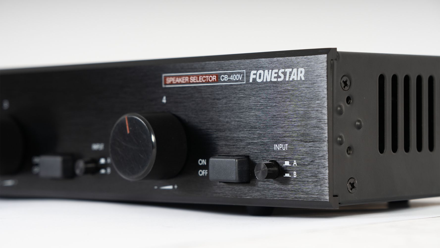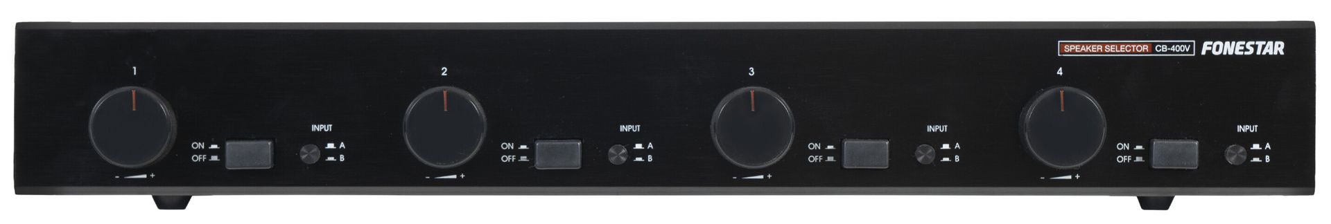 - On/off, A/B input switcher and 12-position independent volume control