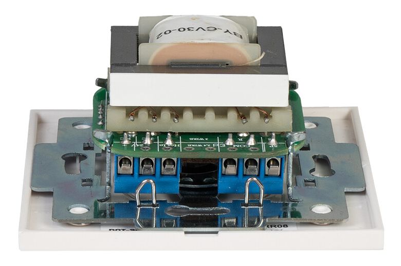 100 V line attenuator with 3- or 4-wire priority with relay for recessed or surface mounting.