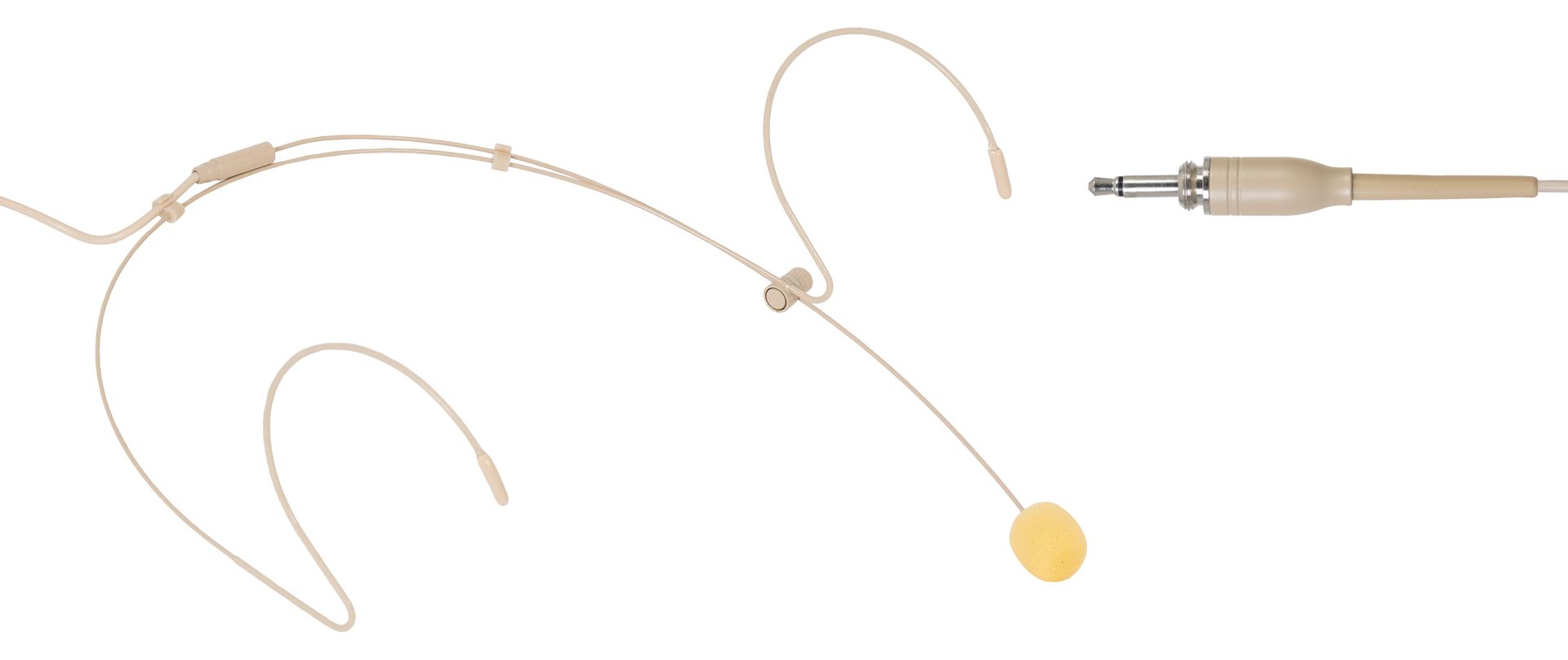 Flesh-coloured head-worn microphone.
