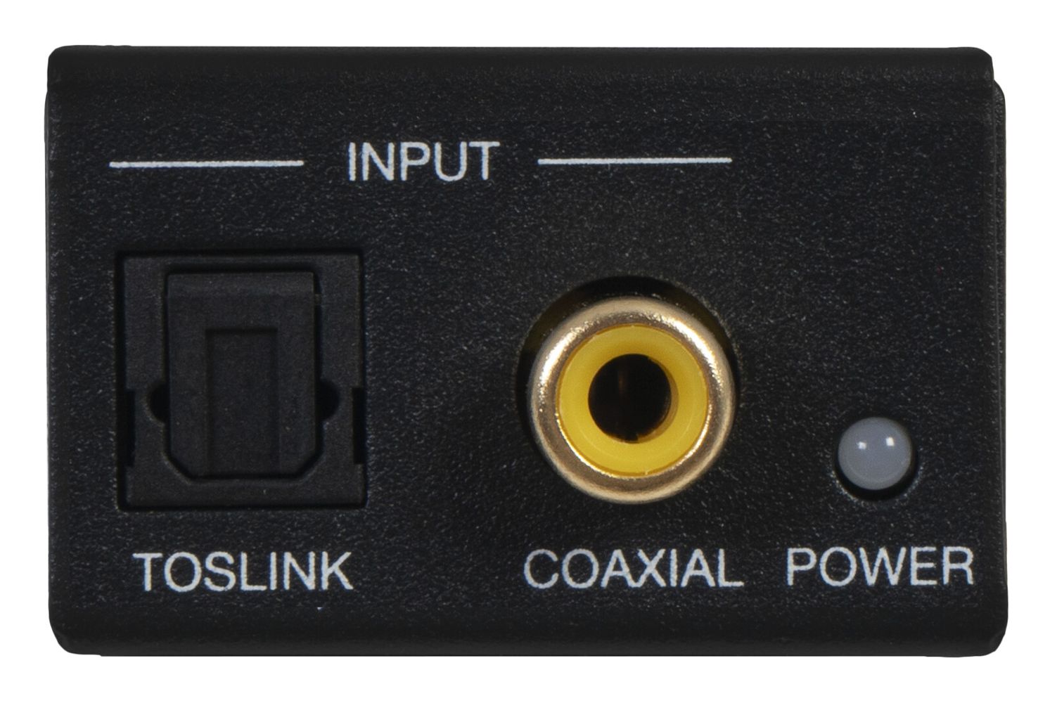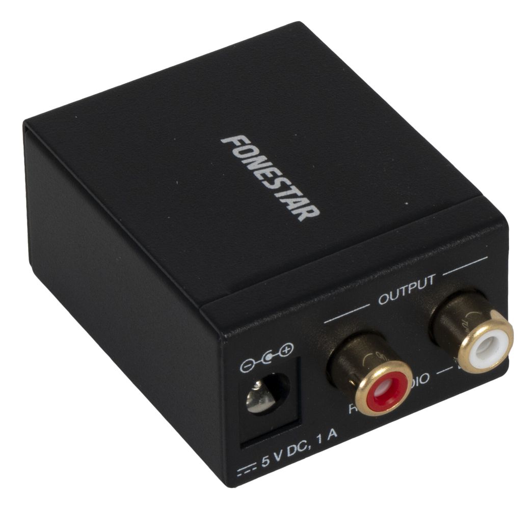 Digital to analogue audio converter. Optical and coaxial digital audio inputs. Reduced size, easy to install and use.