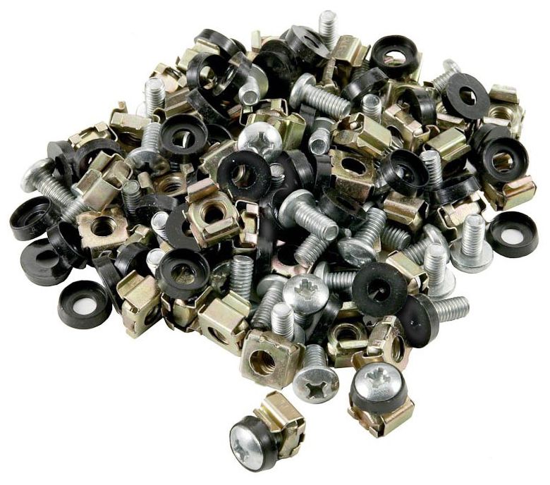 Package of 30 bolts with washers and cage-nuts for mounting in a 19” rack