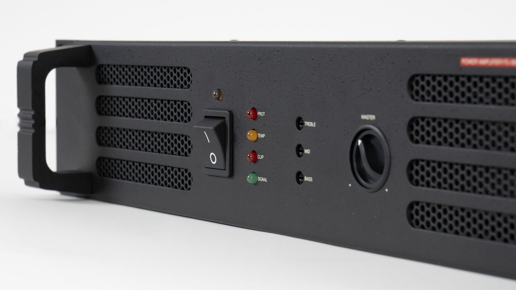 Power amplifier 700 W maximum, 600 W RMS with 4 and 8 Ω loudspeaker output, 100 and 70 V lines.