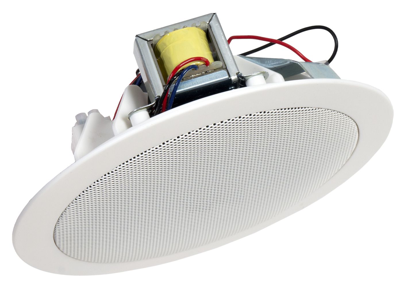 Ceiling loudspeaker with 100 V line transformer for sound reinforcement