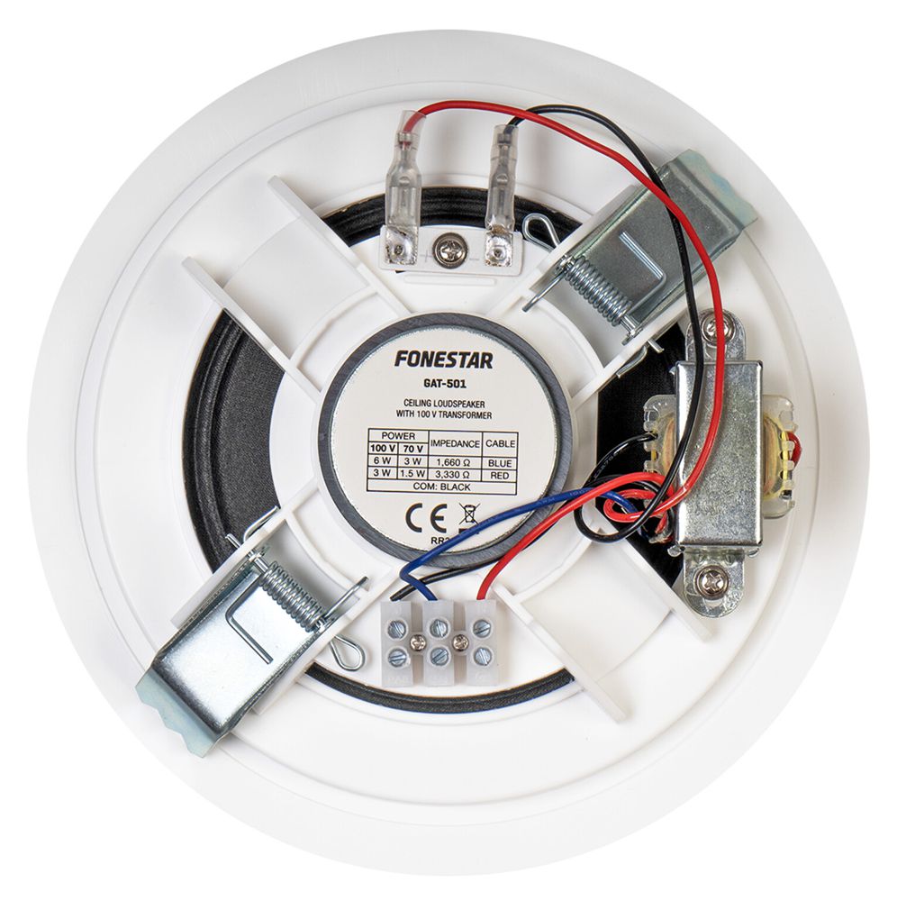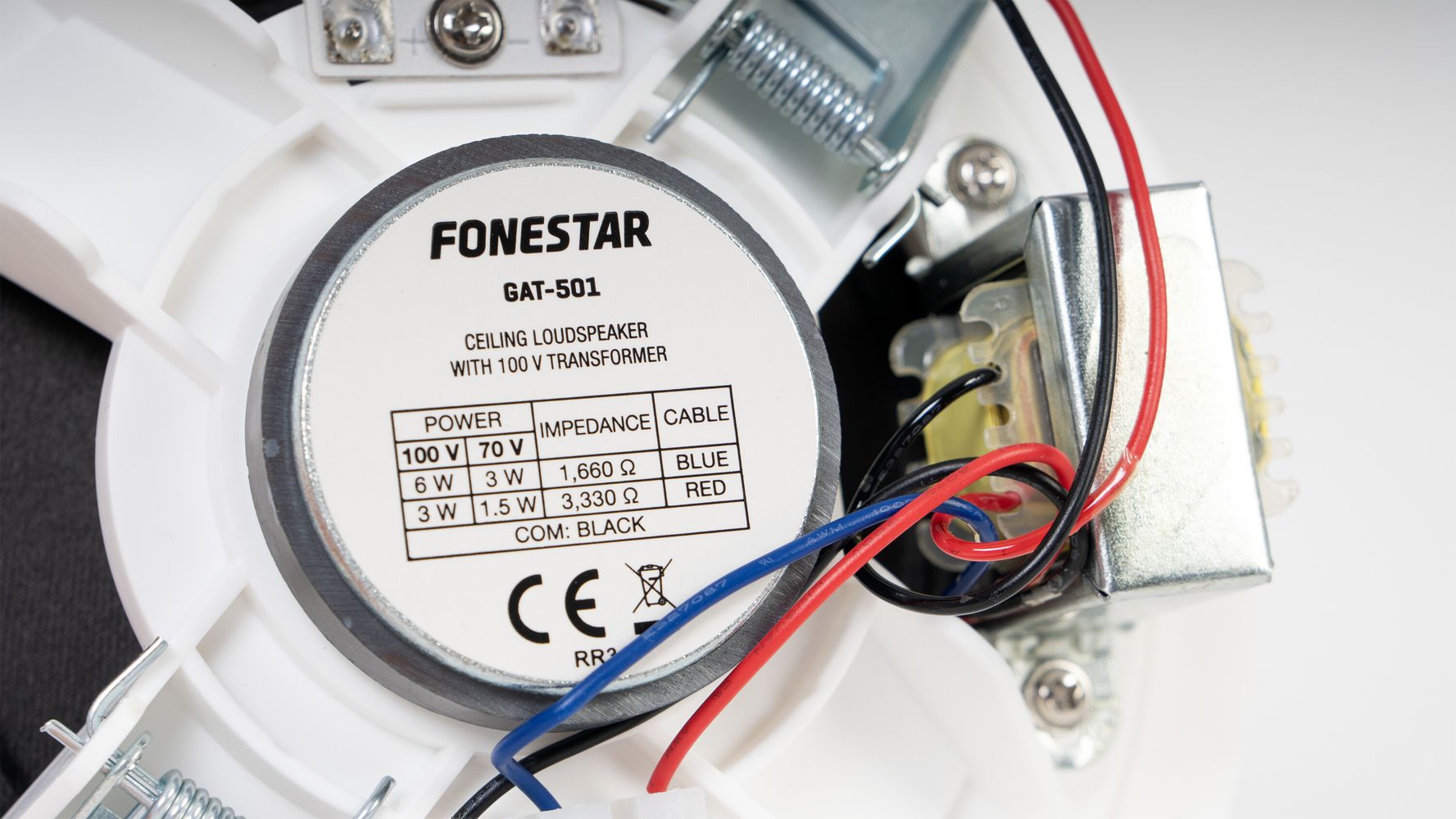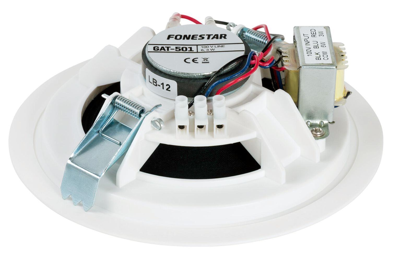 - Ceiling loudspeaker with 100 V line transformer and round grille.