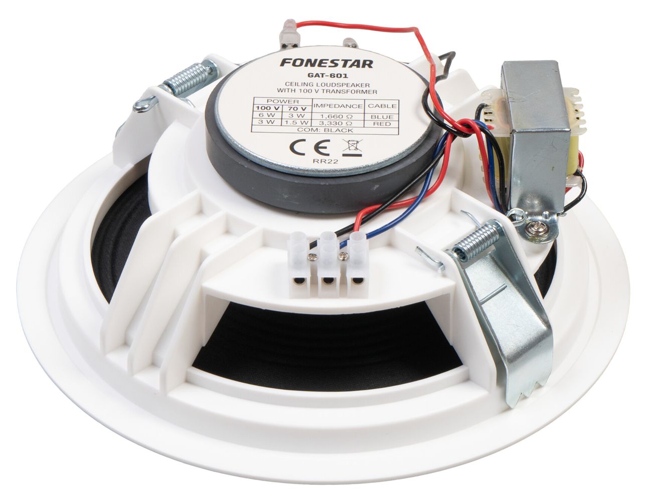 • Ceiling loudspeaker with 100 V line transformer and round grille.
