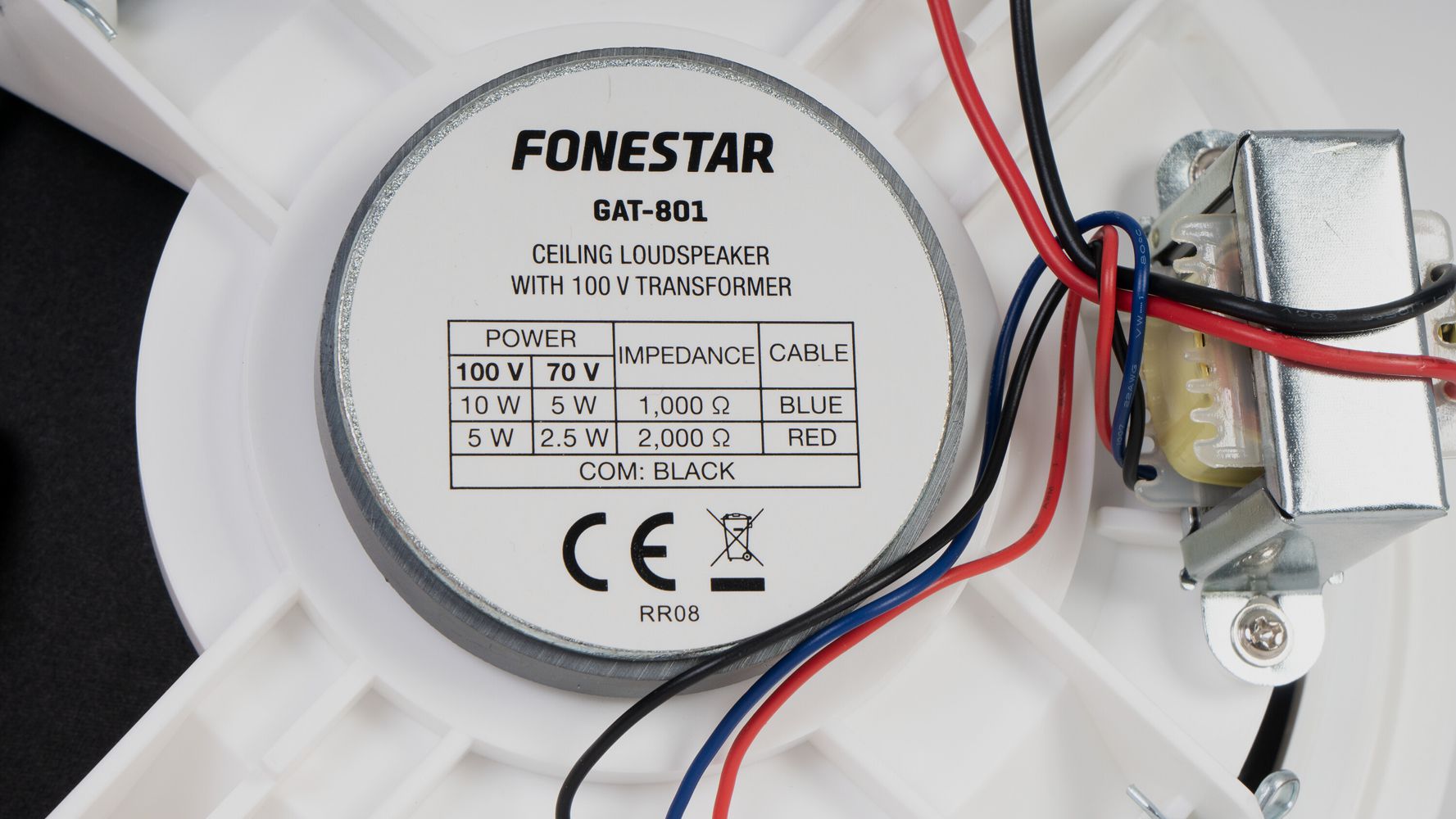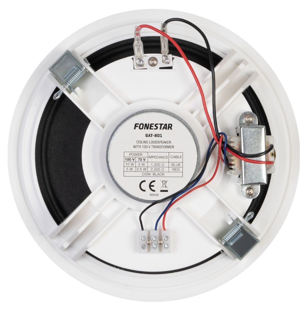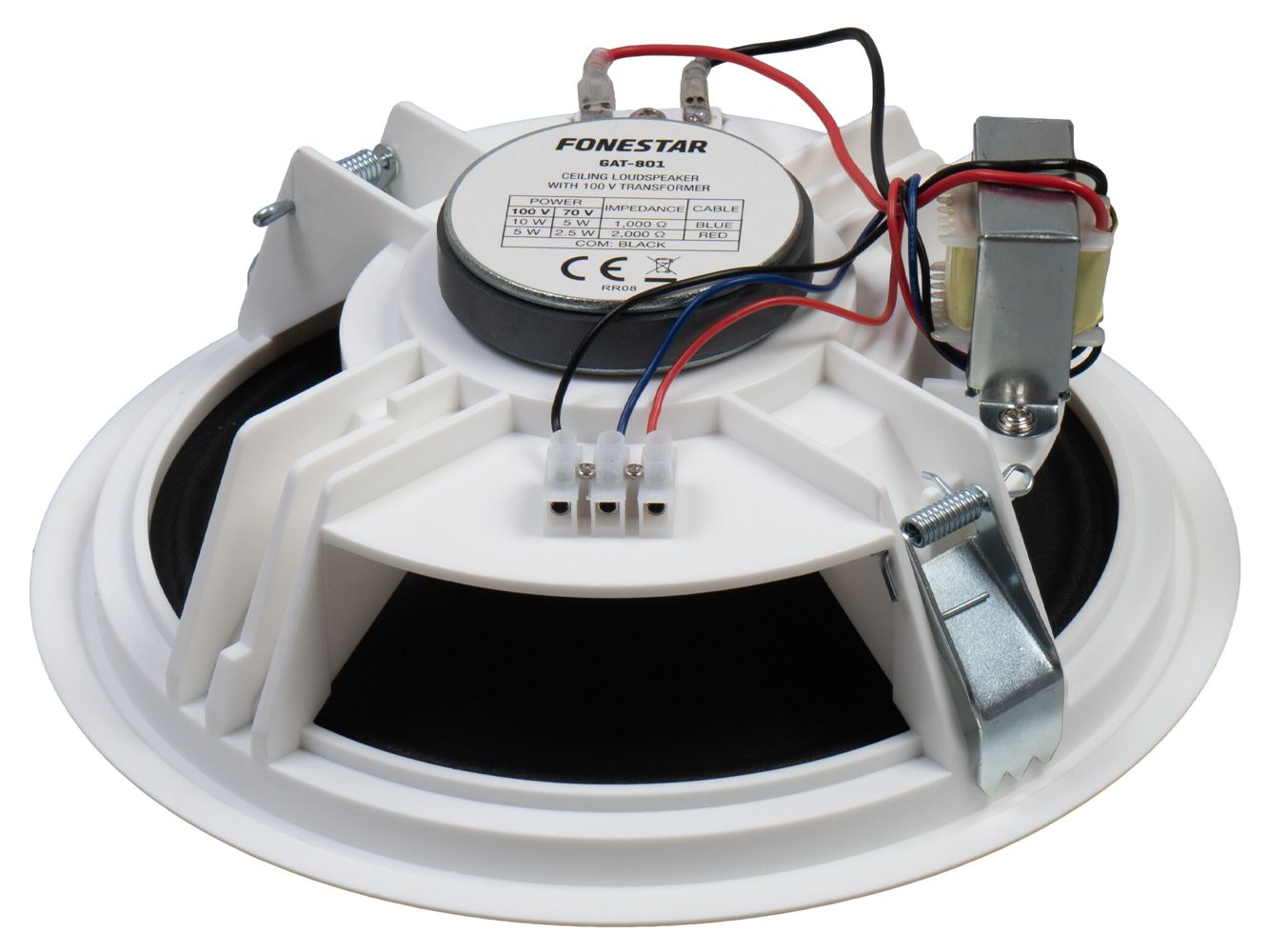 • Ceiling loudspeaker with 100 V line transformer and round grille.