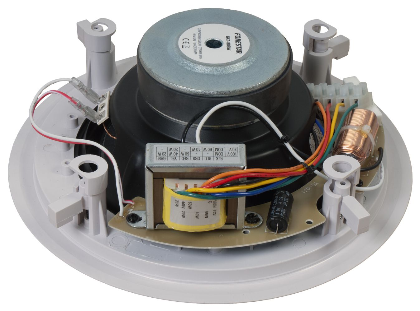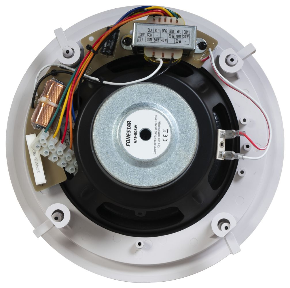 - Ceiling subwoofer, with 100 V line transformer and round grille.