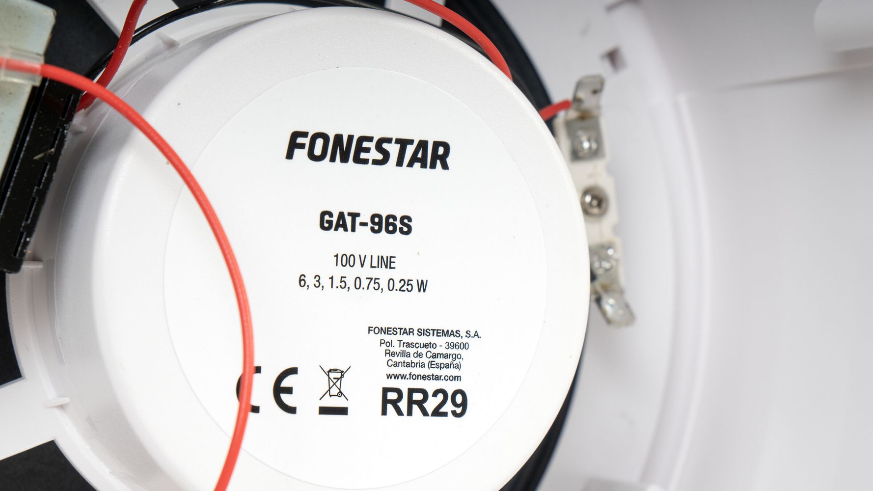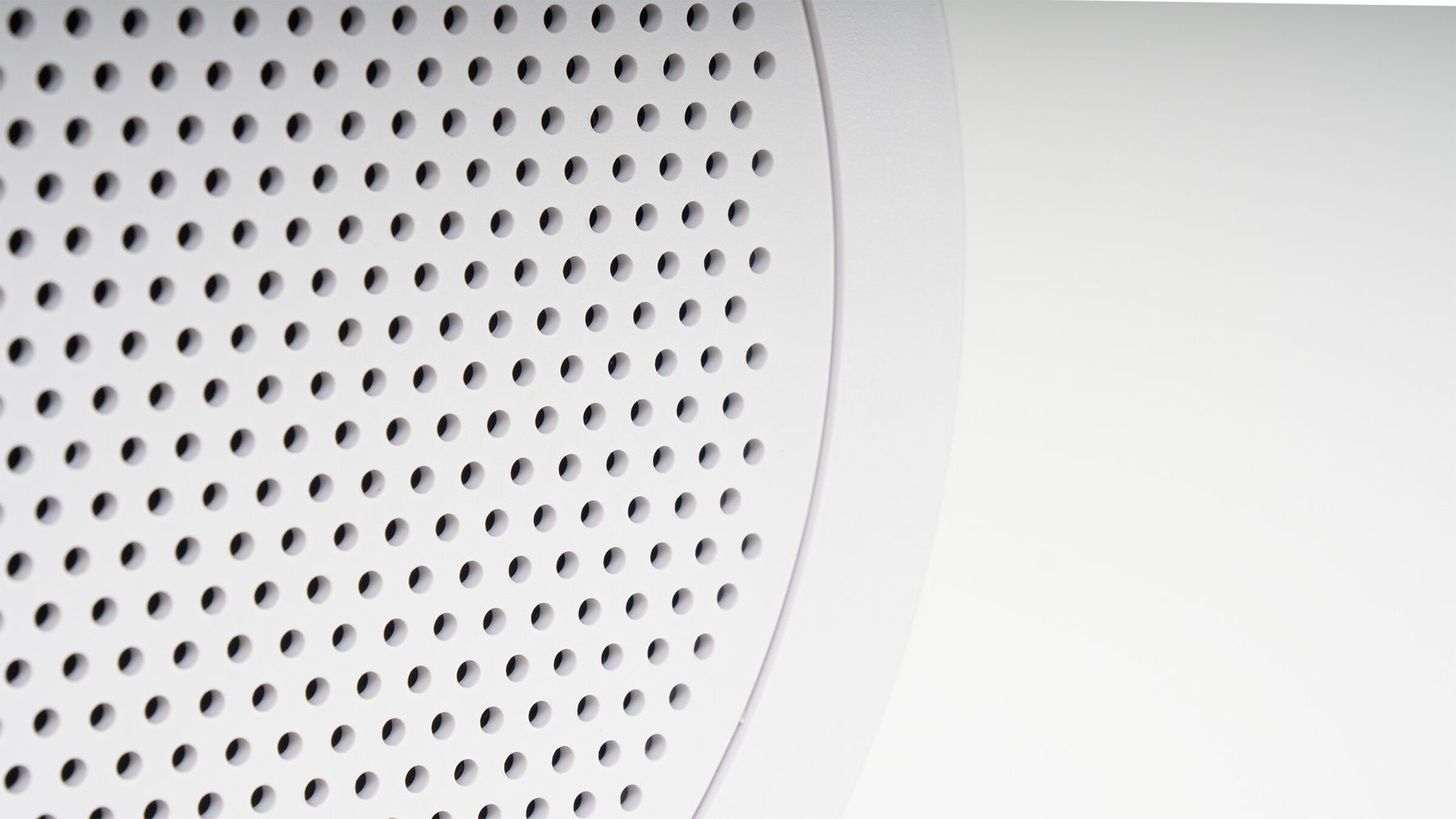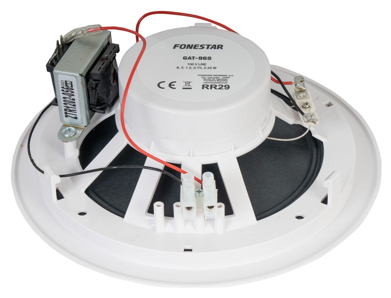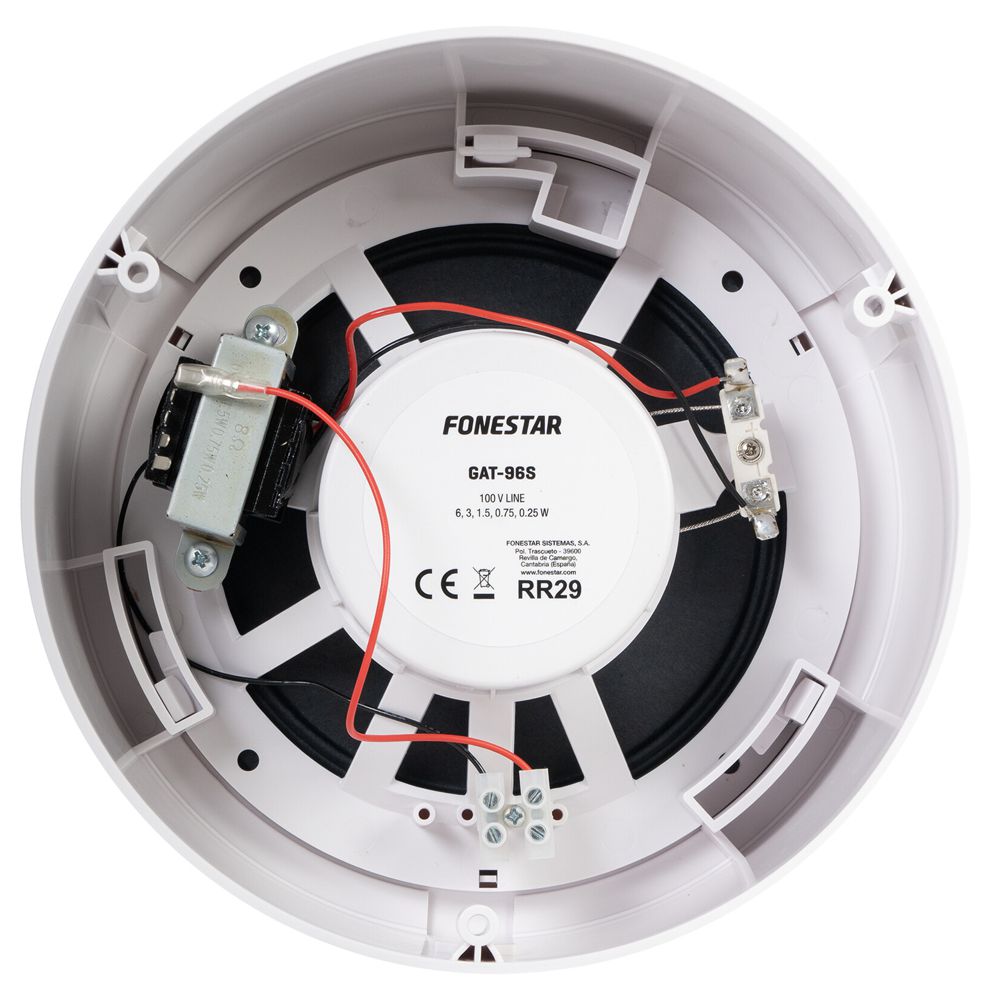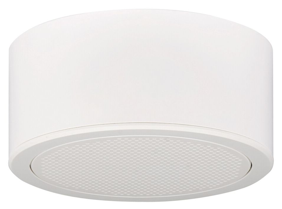 - Surface mount ceiling loudspeaker with 100 V line transformer and round grille.