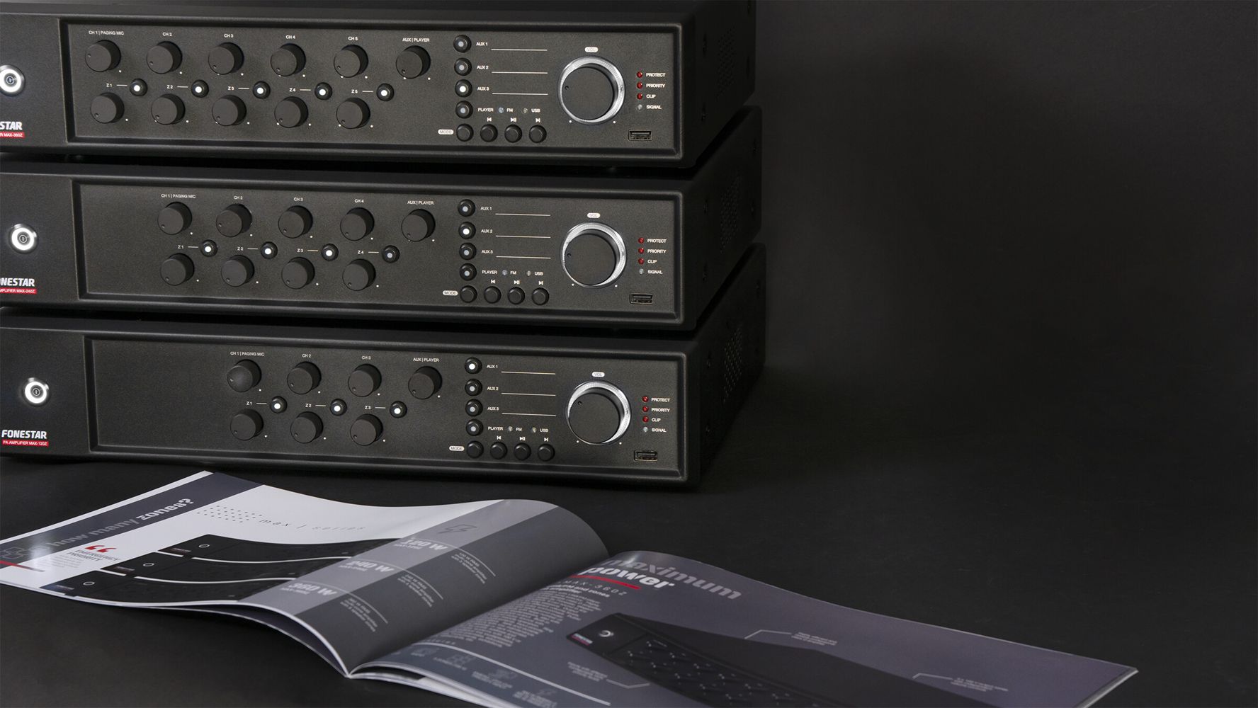 The best solution for PA and background music installations with a large number of 100 V line loudspeakers. Low impedance output for transformerless loudspeakers is also available.