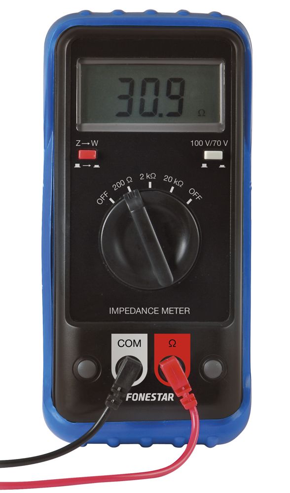 An essential tool for PA installation. Allows the speaker line to be checked and measures the resulting impedance.
