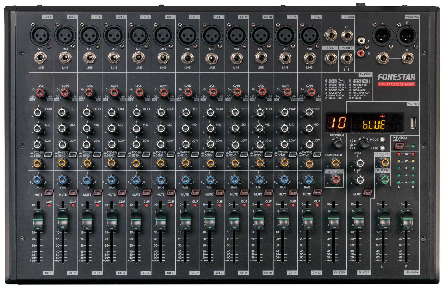 Professional 12-channel stereo mixer with PC audio card and Bluetooth®/USB recorder/player.