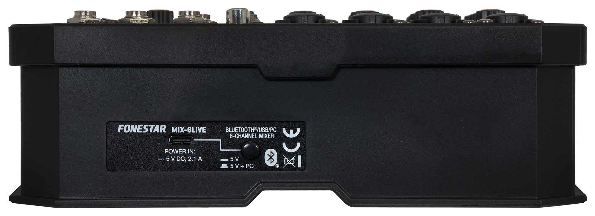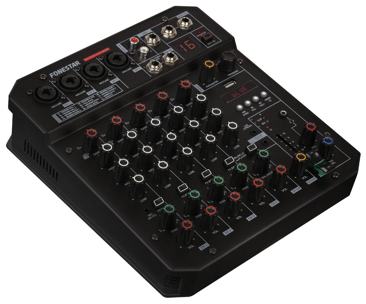 6-channel stereo mixer with live streaming function, PC audio card and Bluetooth®/USB recorder/player.