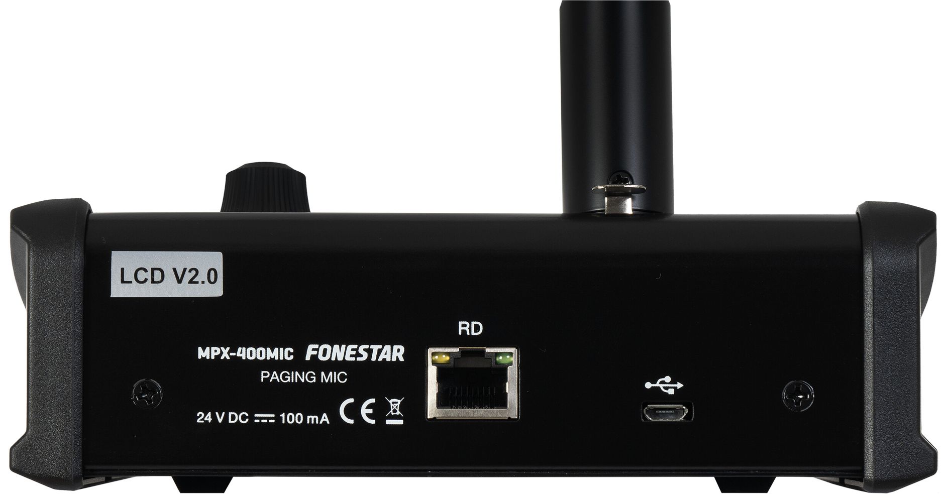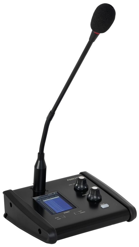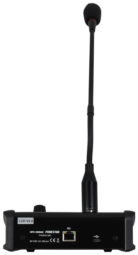 MPX-400MIC is a microphone with zone selector for voice output and musical warning tones for audio matrix mod. MPX-4088.