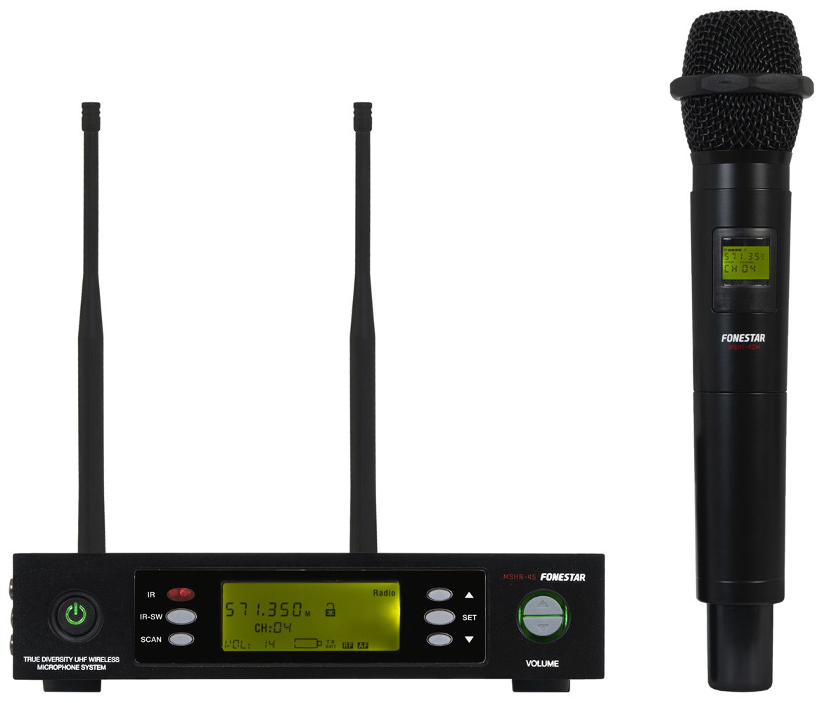 - 1 wireless hand-held microphone with unidirectional electret condenser capsule