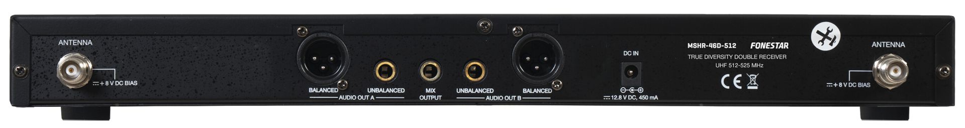 It has 32 selectable channels from 512 to 525 MHz, with auto scan function and transmission of the channel to the microphone via IR.
