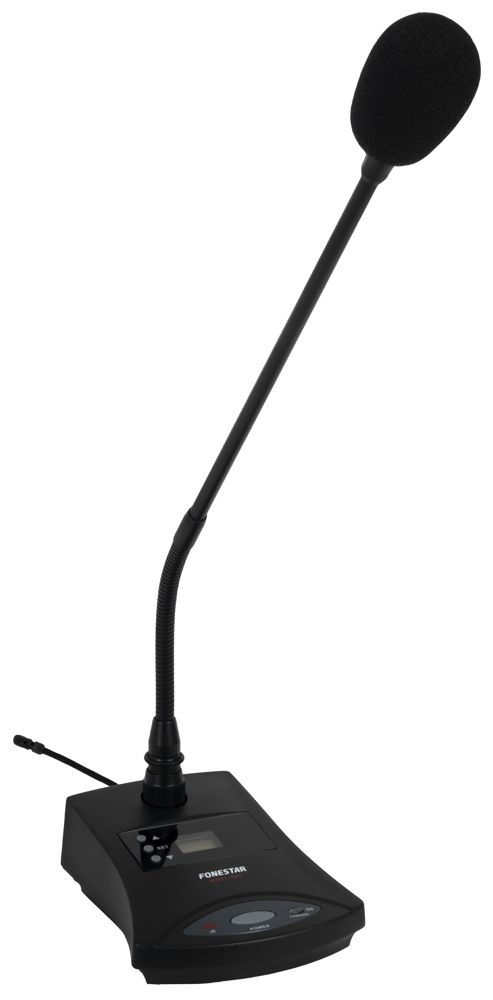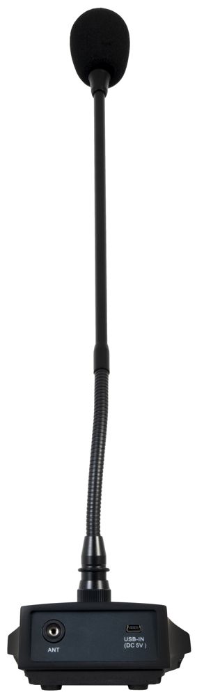 - Wireless desktop microphone with unidirectional electret condenser capsule and UHF transmitter for replacement or extension