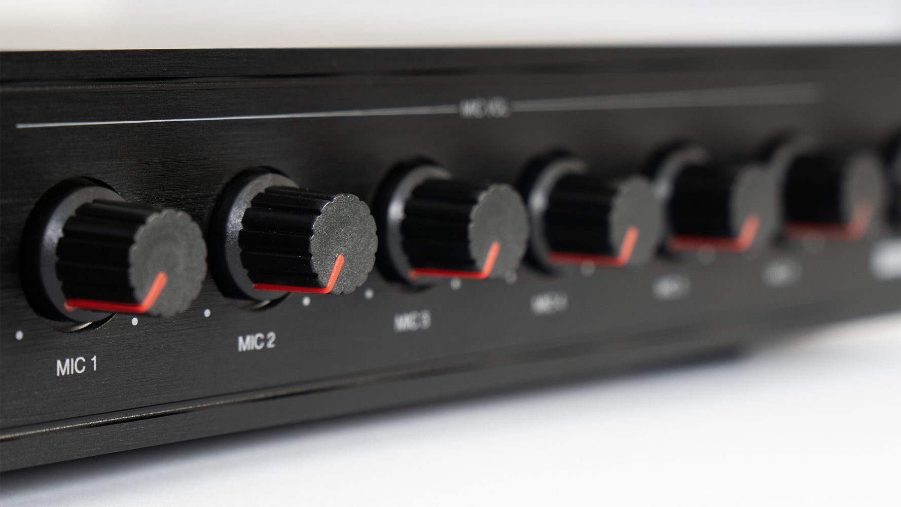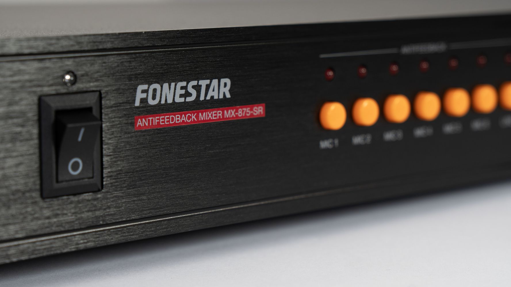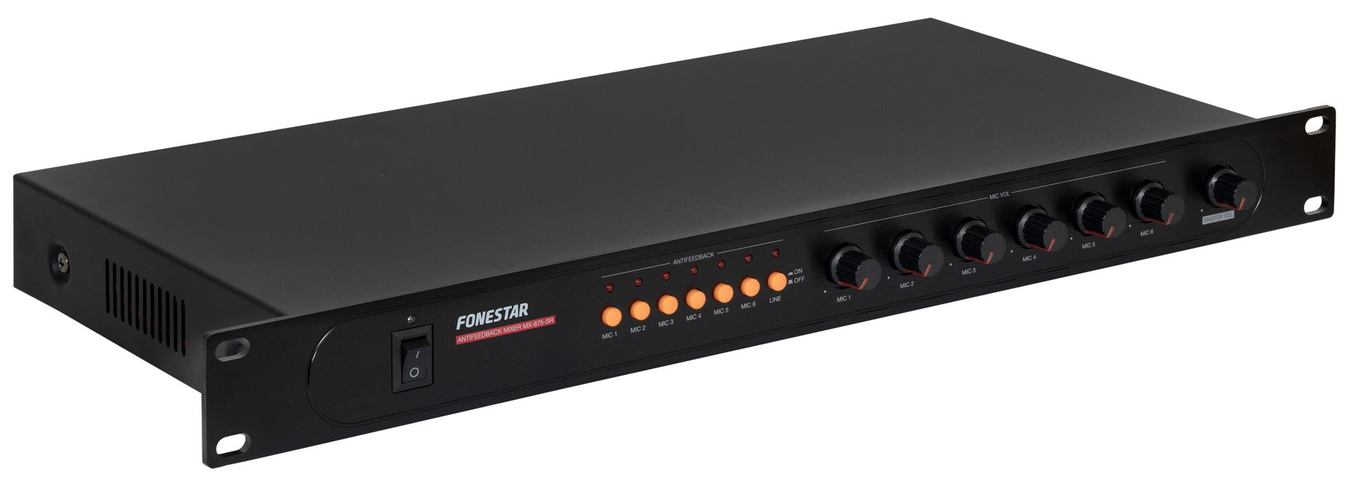 - Volume, feedback suppression, phantom power supply and master output volume