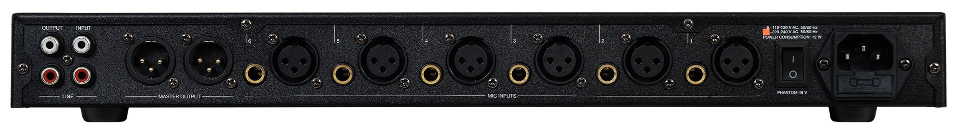 - Phantom power for the XLR inputs