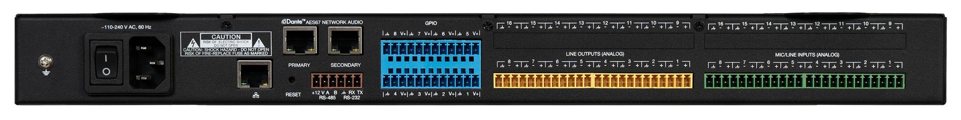 8 x 8 analogue and 8 x 8 DANTE audio matrix with DSP, 8 GPIOs
