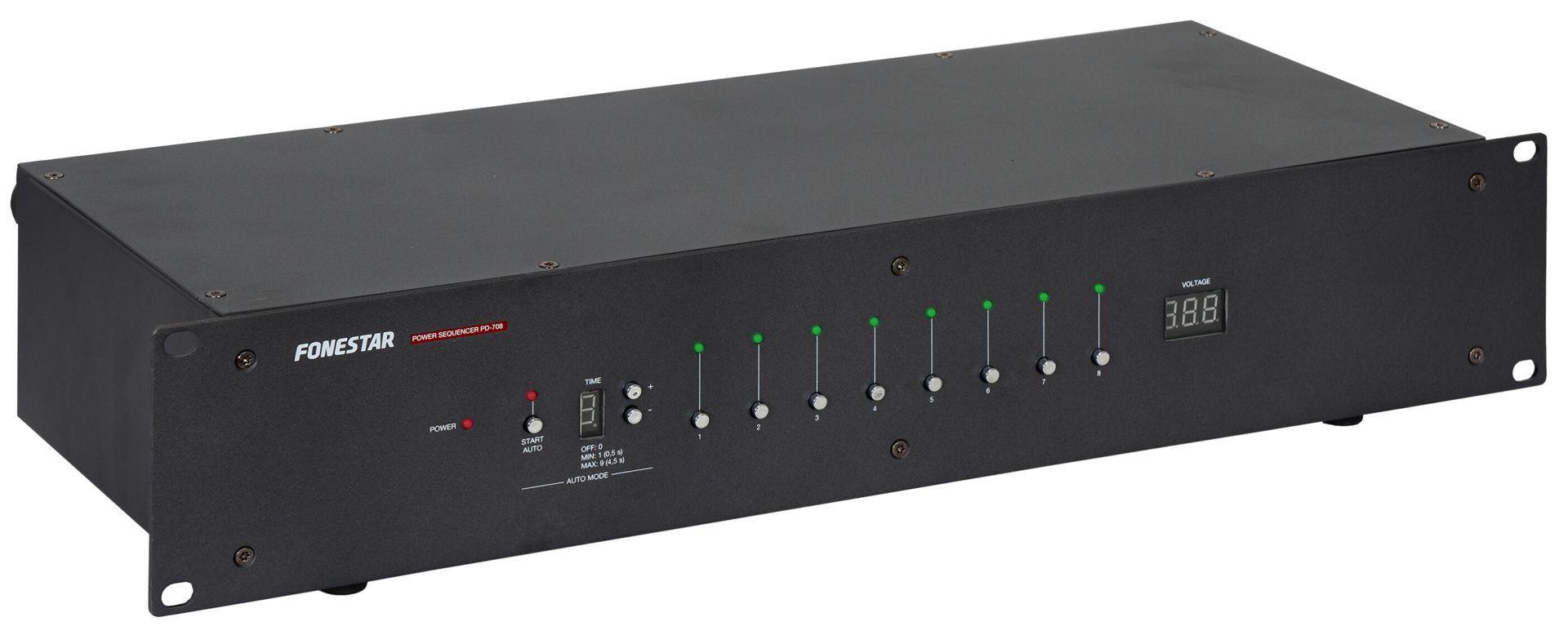 Power sequencer that allows the sequential activation of audio devices. For protection, avoid consumption peaks when switching on and eliminate noise.