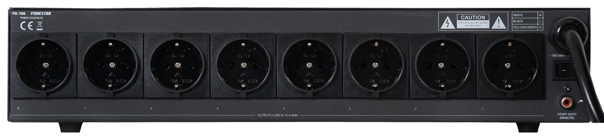 - 8 female schuko connectors, 15 A total