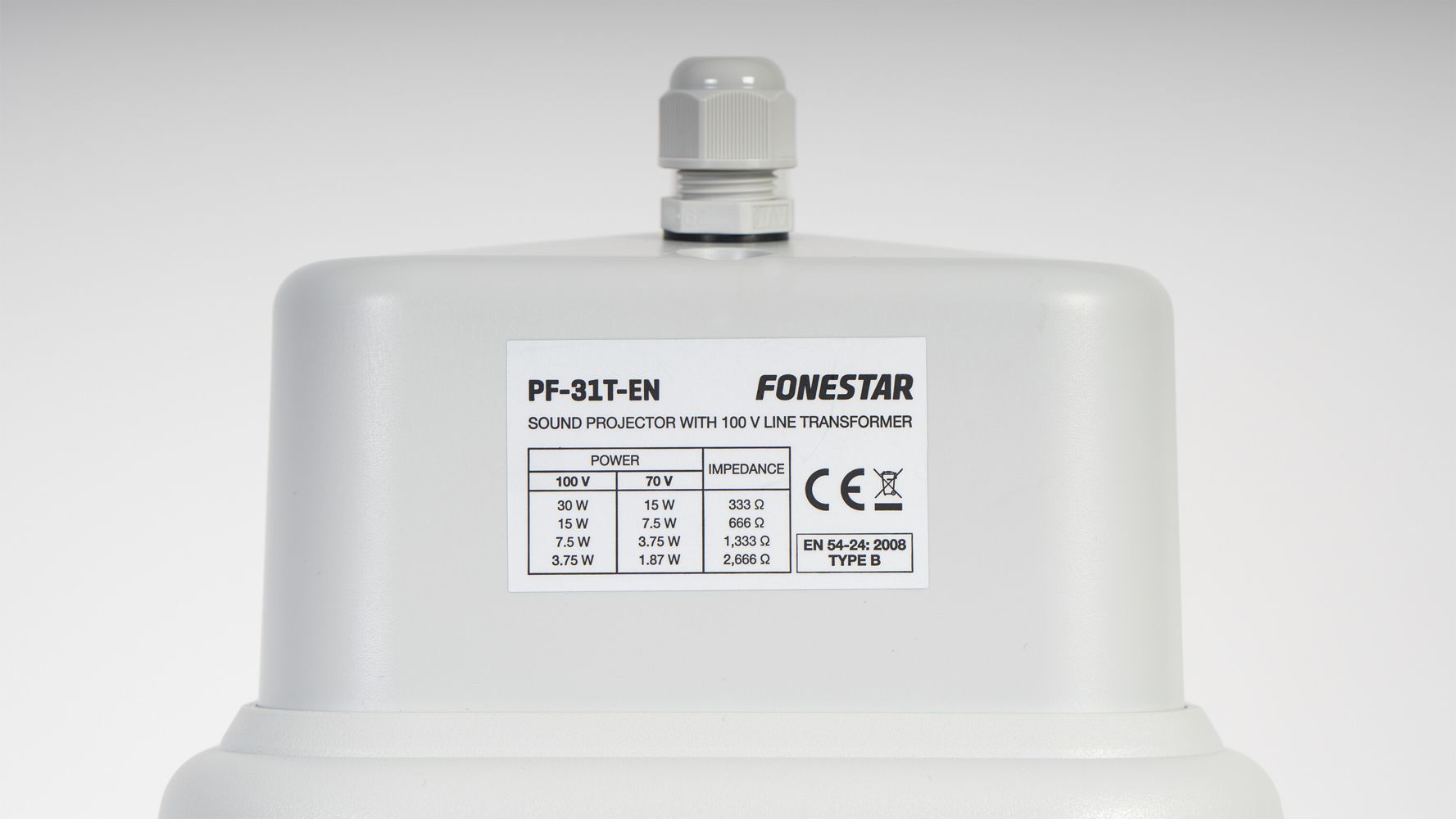 - EN 54 sound projector with diffuser and 100 V line transformer.