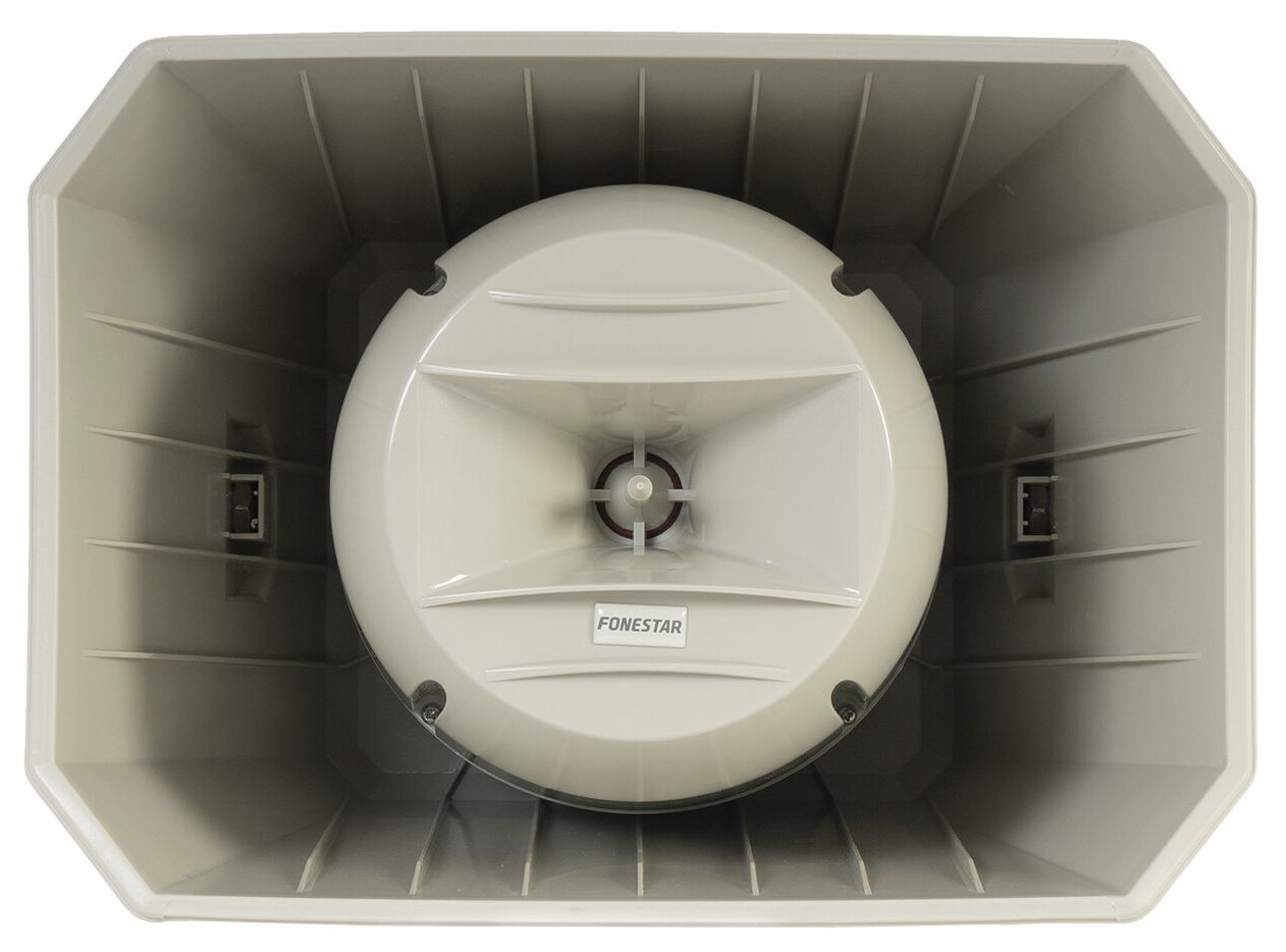 Perfect for background music and voice announcements in outdoor areas of shopping centres, car parks, bus stations, train stations, factories, etc.