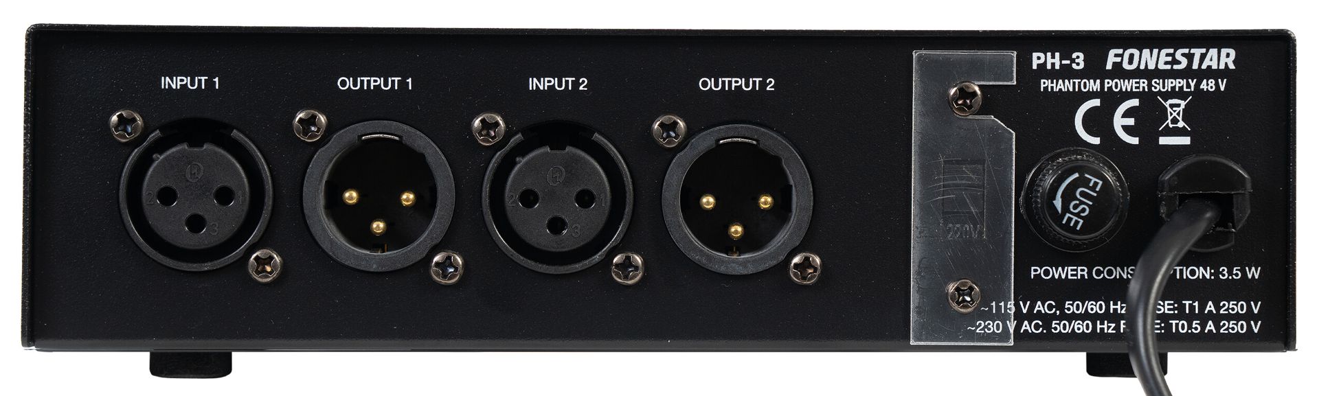 Phantom power supply Provides 48 V phantom power supply to condenser microphones. Through means of this power supply, condenser microphones can be used on inputs from a mixer or amplifier that does not have phantom power. For live shows, performances, press rooms, etc.
