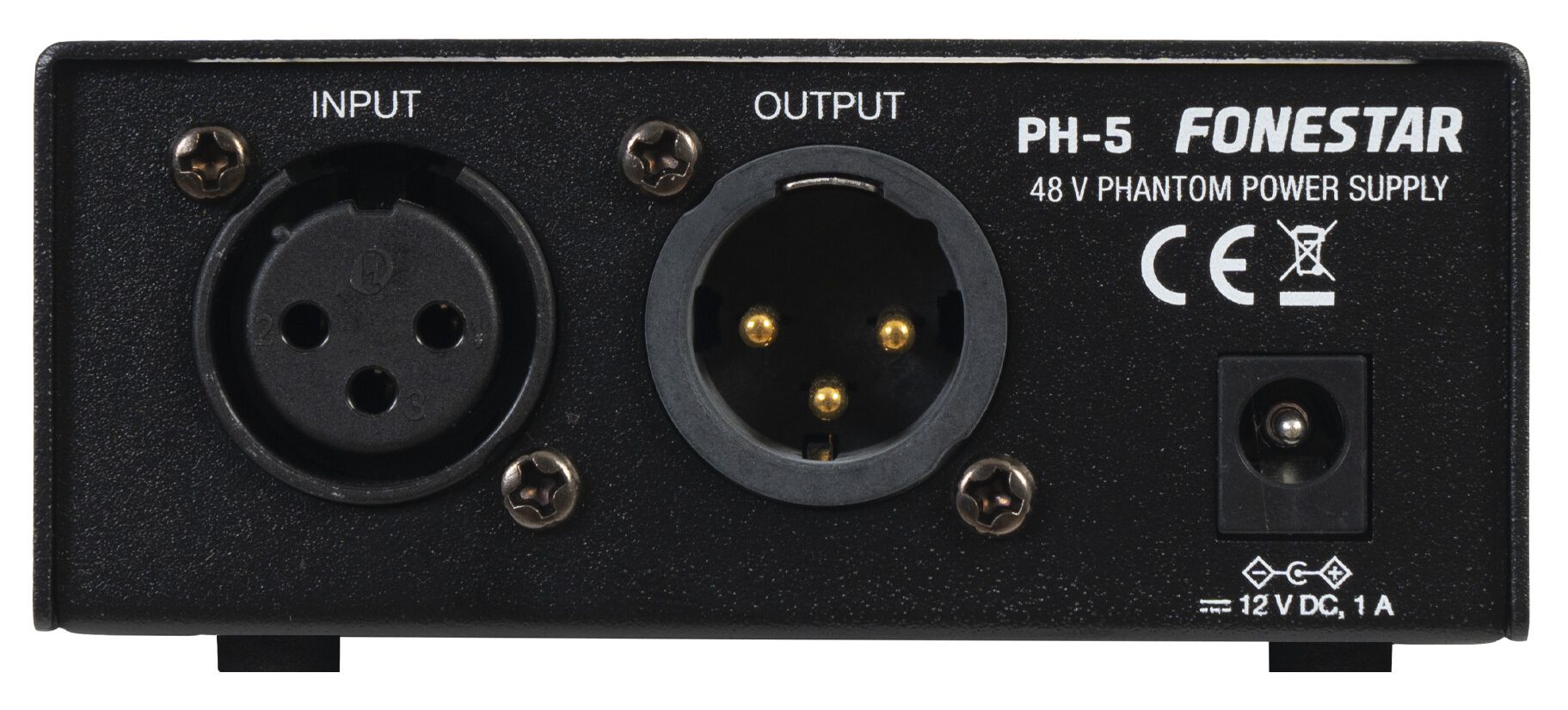 Provides 48 V phantom power supply to condenser microphones. Through means of this power supply, condenser microphones can be used on inputs from a mixer or amplifier that does not have phantom power.