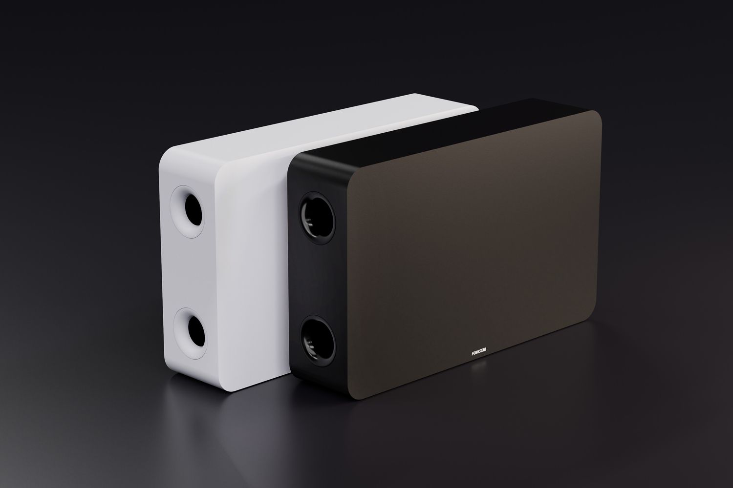 Unique FONESTAR design, with stylised shapes and compact size. Available in black or white.