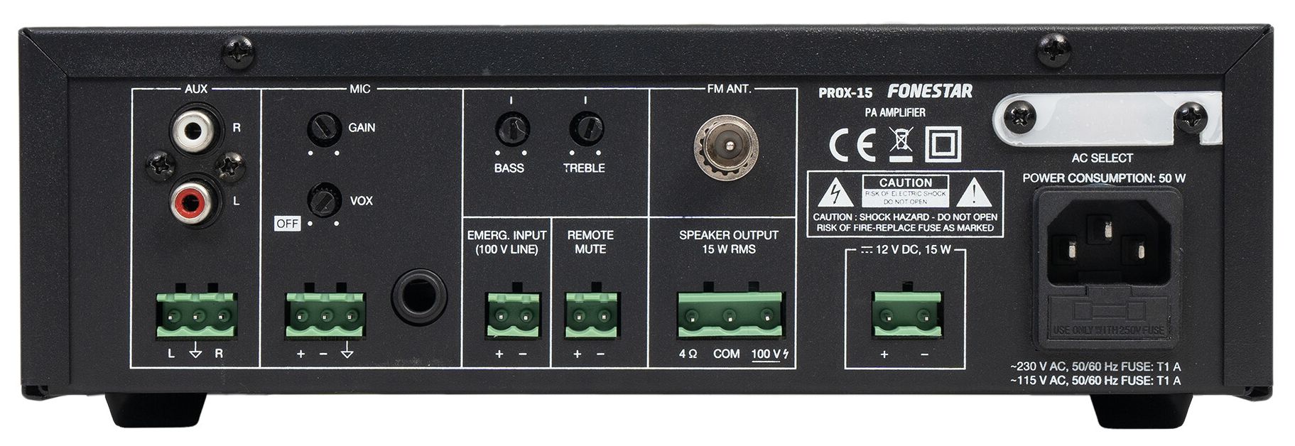 For public address and piped music systems with 100 V or low impedance line loudspeakers. Commercial premises, educational centres, public address vehicles, monuments, exhibitions, bars, restaurants, etc.