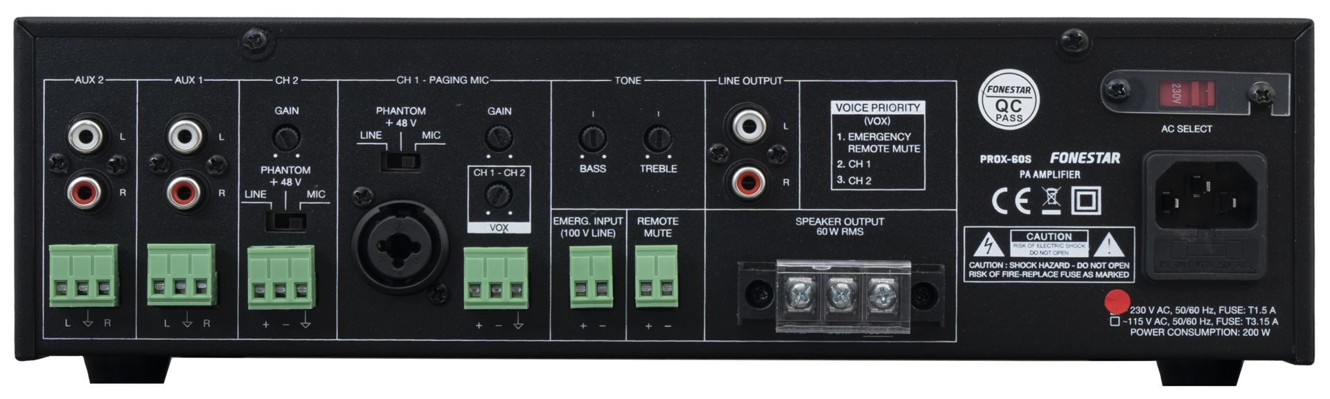 - 100V Emergency input with maximum priority, attenuates all other inputs