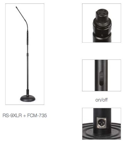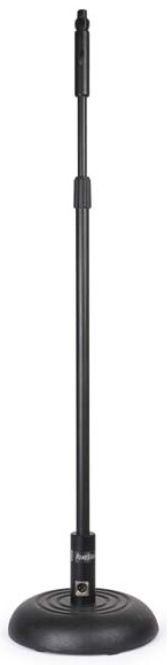 Microphone stand with round cast-iron base, XLR connector without threads and with switch.