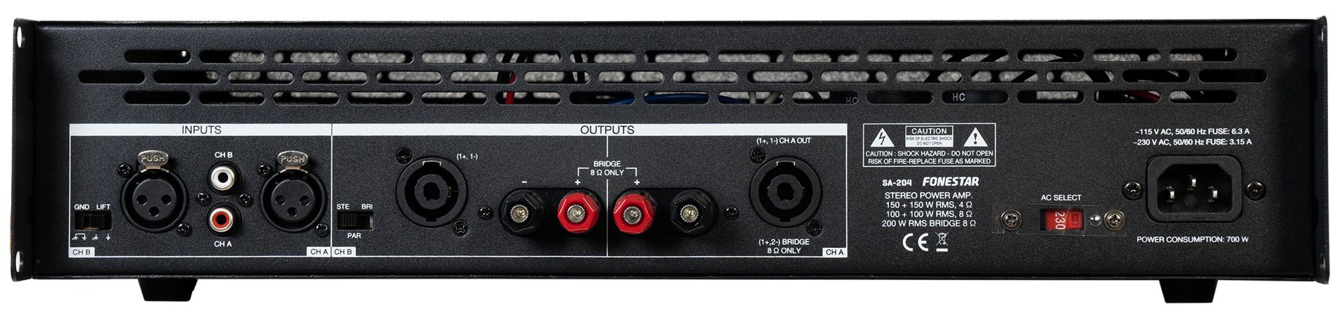 - Professional stereo power amplifier