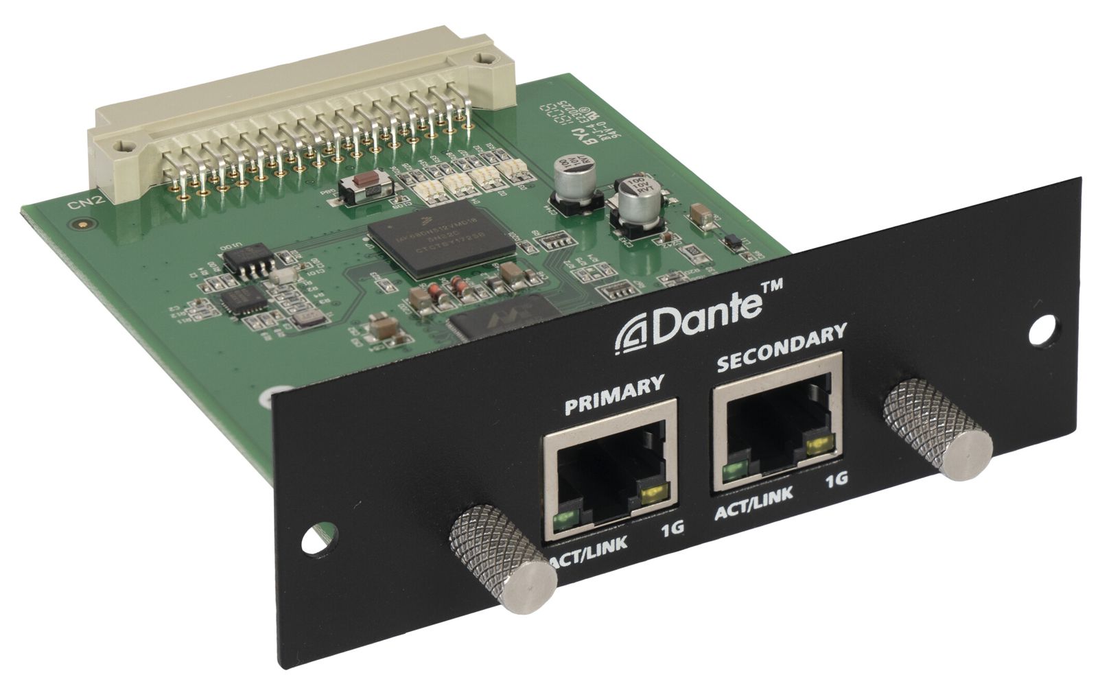 DANTE expansion module, 2 input channels and 2 output channels. Digital audio transfer.