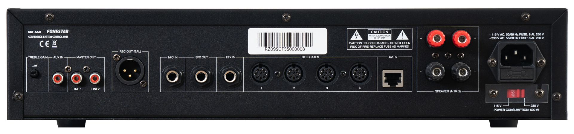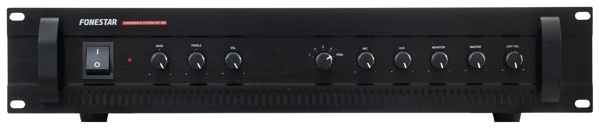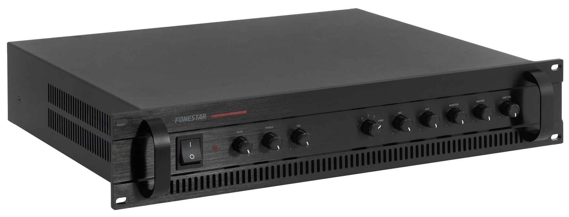 Conference system that allows the connection of up to 64 microphones in total (extendable up to 250).