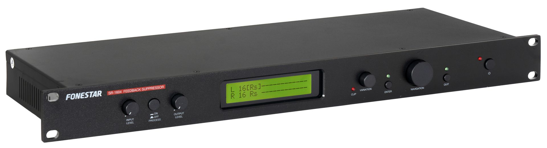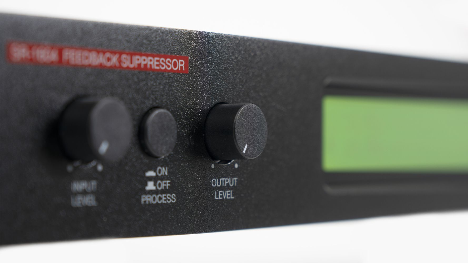 This feedback suppressor features a feedback detection and suppression algorithm based on dynamic scanning of frequency bands. It analyses the audio signal and detects the frequencies causing the feedback. It eliminates feedback by adjusting the parameters of up to 12 high-precision adaptive notch filters per channel. The filters provide an attenuation of up to 45 dB.