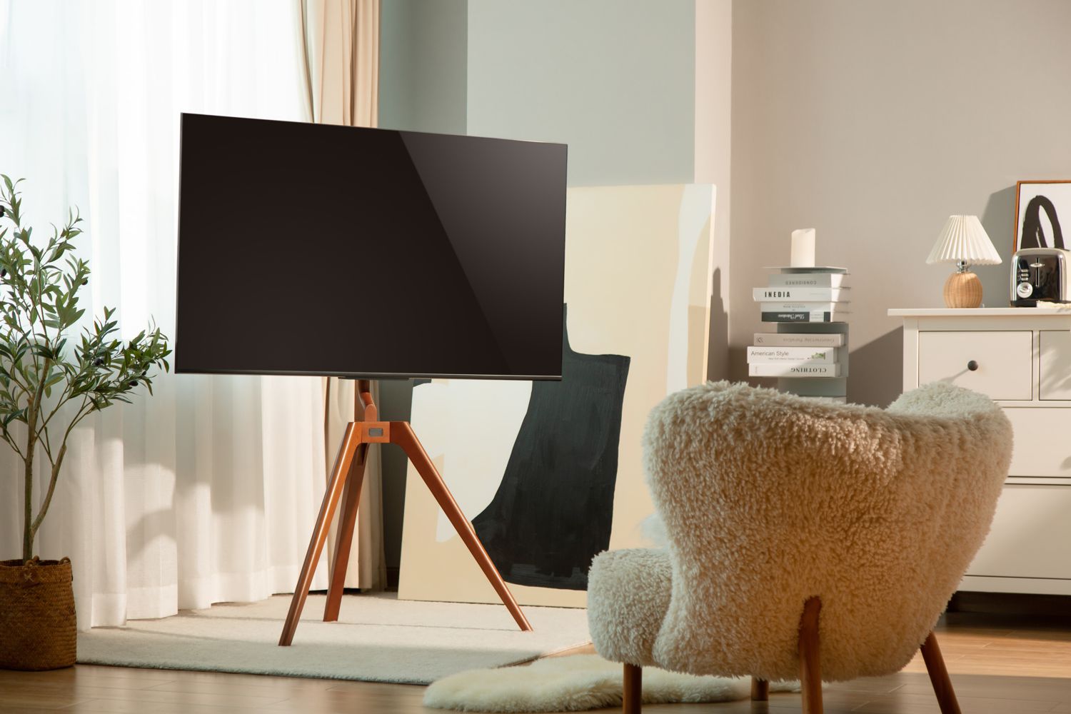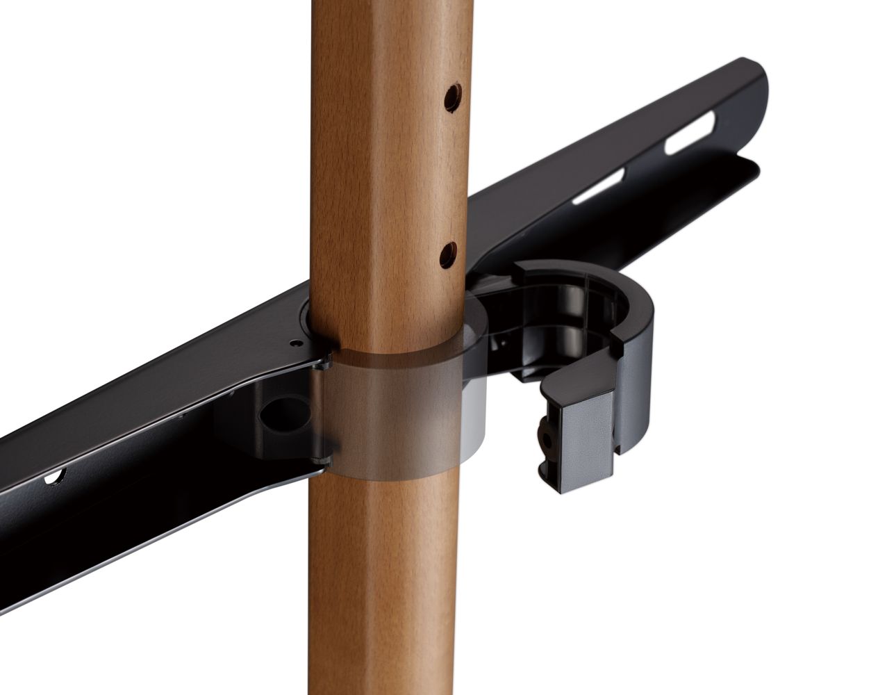Attractive design and matt black and walnut colour. Supports TV with a maximum weight of 40 kg. Easy assembly and operation. Instructions and mounting accessories included.