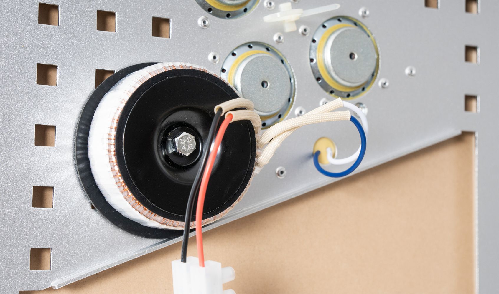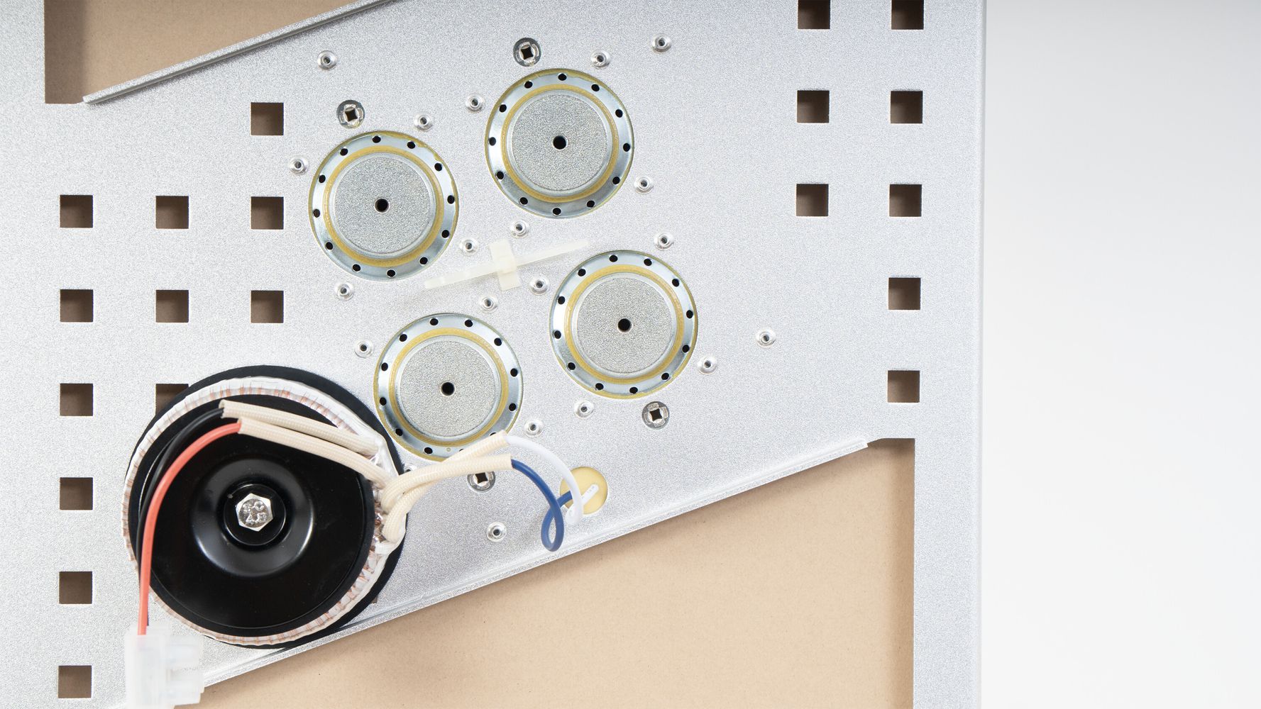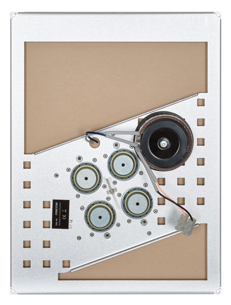 Invisible surface speaker with 70 and 100 V line transformer. Allows to cover open areas with sound, completely hidden behind the plasterboard panels, creating a musical ambience without any visual impact.