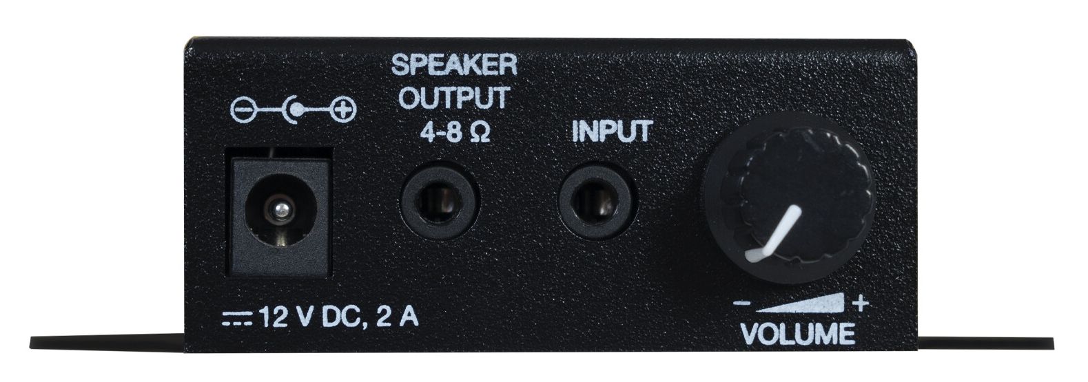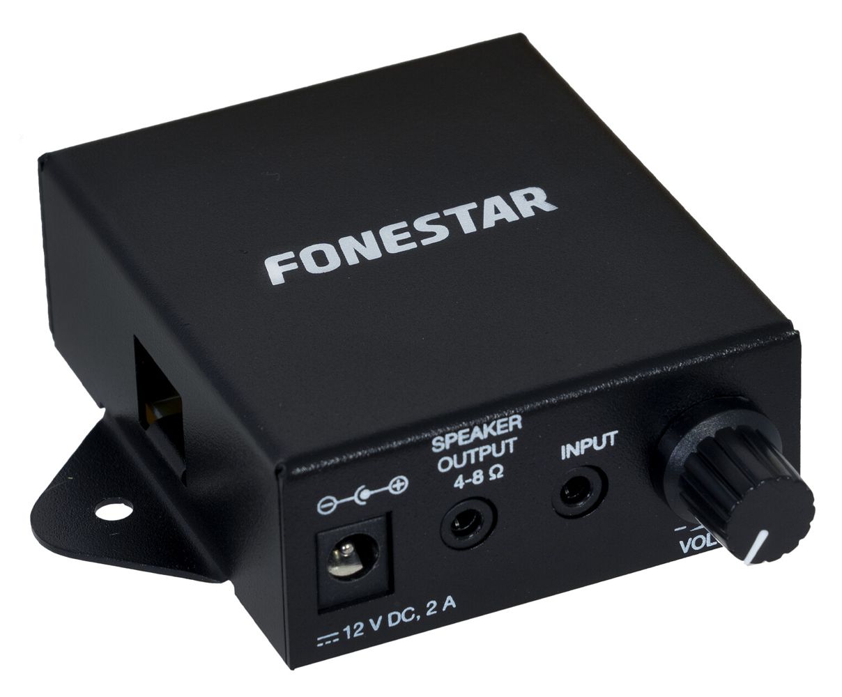Stereo amplifier. Compact and versatile, amplifies signal from microphones, mobile telephones, MP3 players, etc.