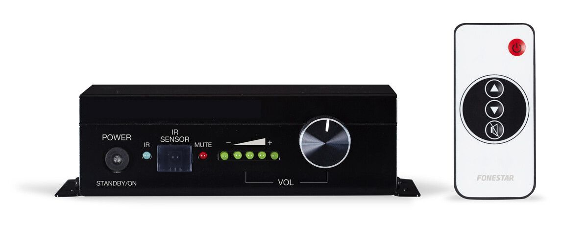 - LED power, standby, volume level, mute and IR indicator