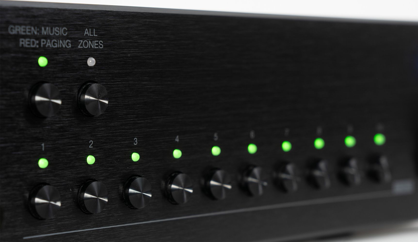 Switching and control of 10 loudspeaker zones, expandable to 300 zones.